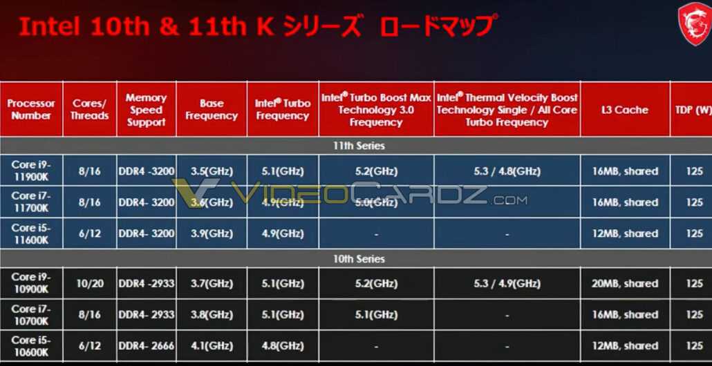 The leaked specifications come from Videocardz and seemingly originated from an internal MSI presentation. The specifications slide mentions all three unlocked chips which will be part of the 11th Gen Rocket Lake Desktop CPU family, the Core i9-11900K, Core i7-11700K, and the Core i5-11600K.