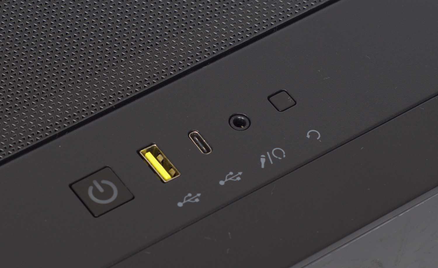 Набор портов у корпуса современный, но количество портов USB небольшое (всего один USB 3.0 тип А и один порт USB 3.1 тип С). Также имеется один 3.5 мм аудио (наушники/микрофон). По бокам находятся кнопки питания и сброса.