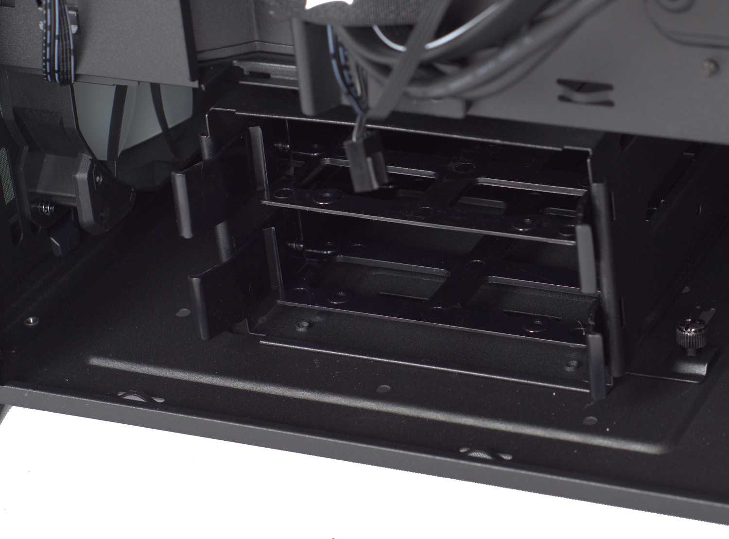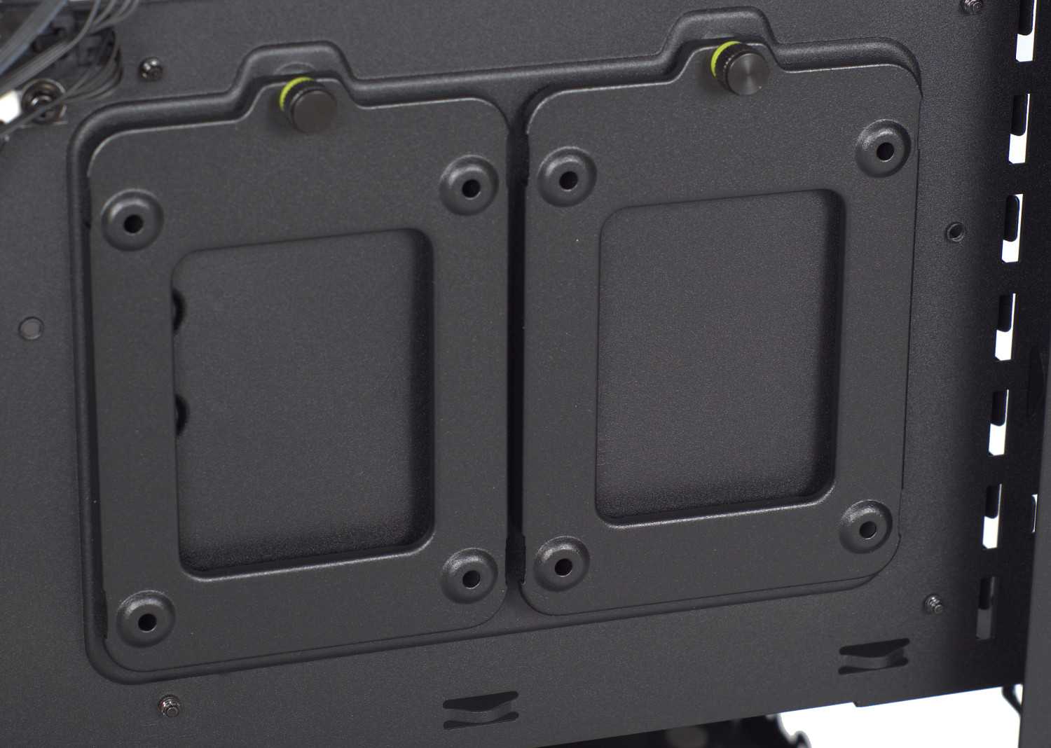 В области размещения материнской платы, за поддоном внизу, находятся еще два посадочных места под 2.5″ накопителя.