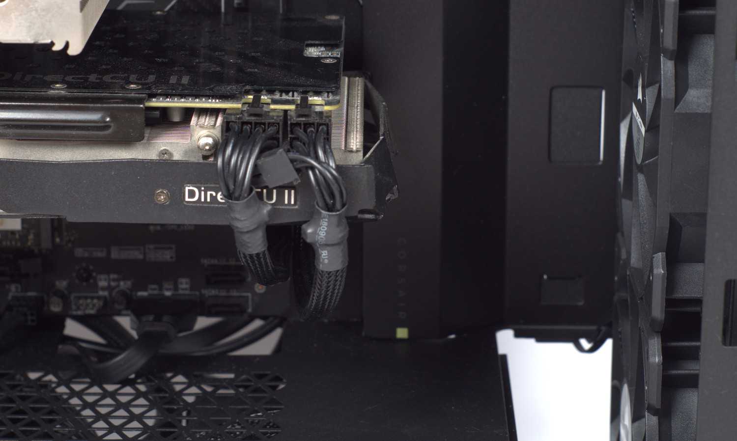 Последнее действие по установке – фиксация видеокарты, которая может быть длиной до 360 мм.
