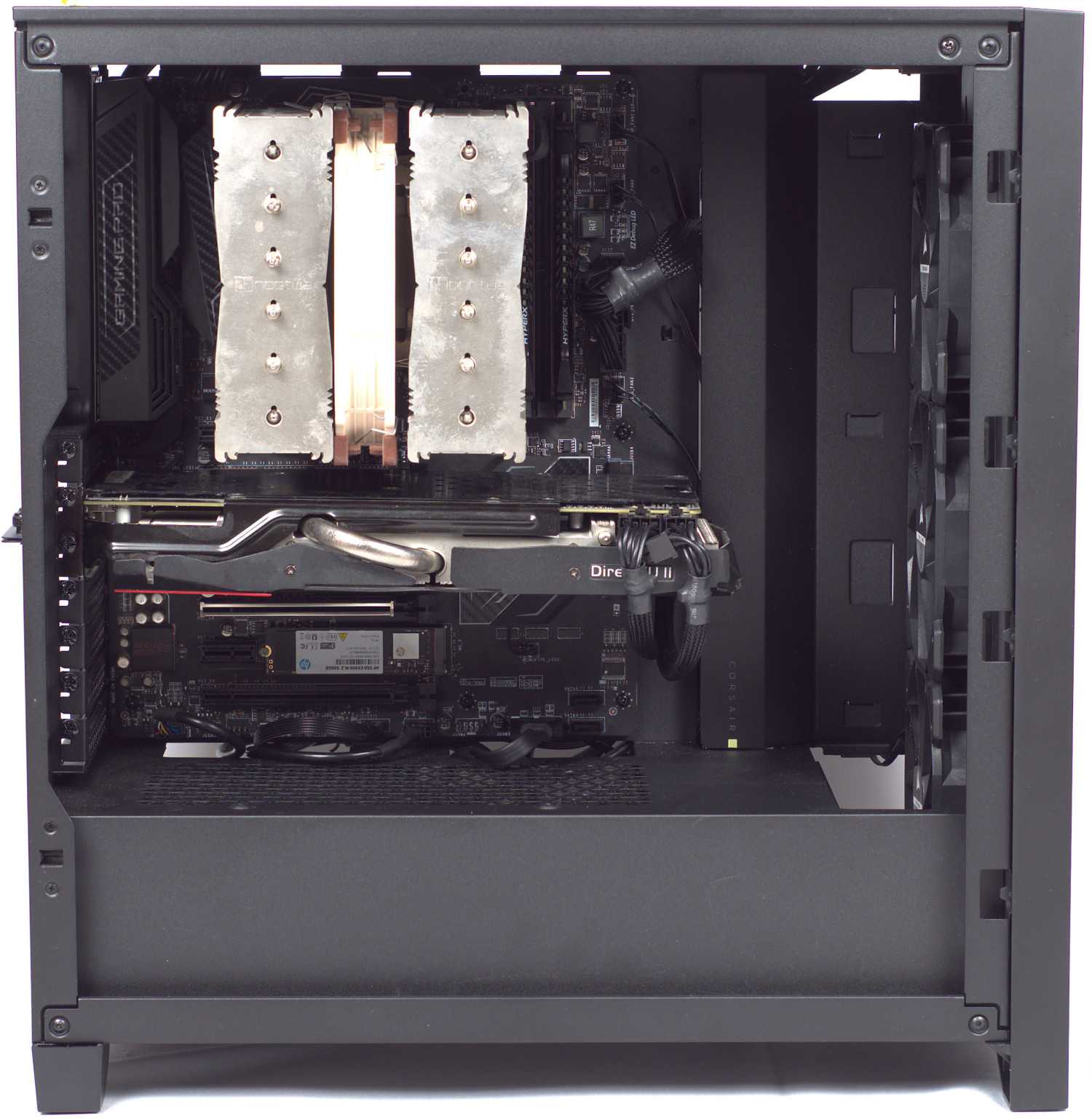 Финальный результат. Стоит отметить отличный кабель-менеджмент корпуса Corsair iCUE 4000X RGB. Проблем с выводом кабелей и фиксацией не возникло.