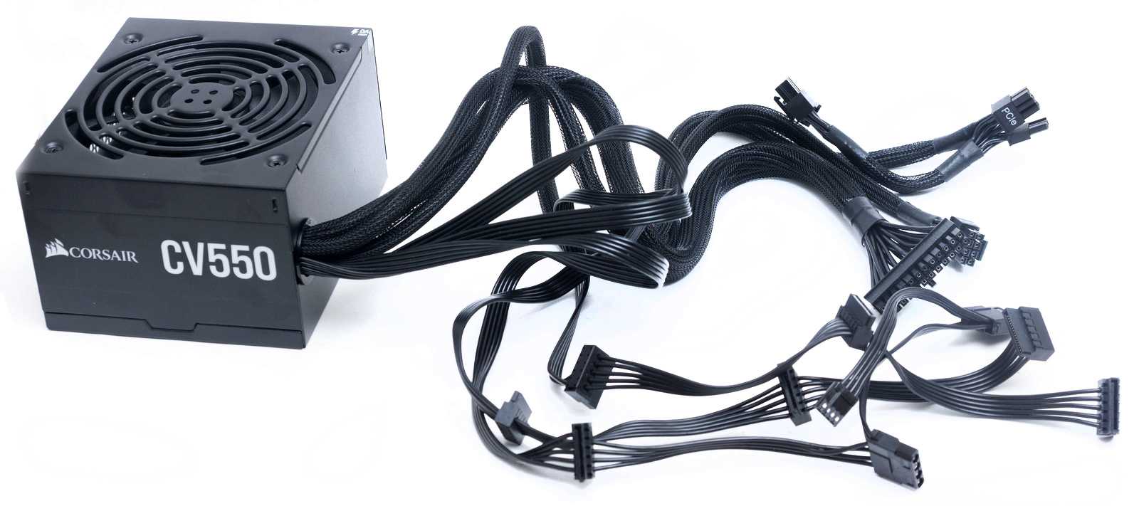 Семейство CS на данный момент включает четыре блока питания мощностью от 450 до 750 Вт, все блоки питания обладают эффективностью 80PLUS Gold, модульной системой подключения кабелей, внутри используется 120-мм вентилятор. Основные отличия между моделями кроются в мощности и опциях подключения. Для сравнения, у блоков питания RM вы получите полностью модульную систему подключения кабелей и разъём для интерфейса Corsair Link — но и доплатить придётся.