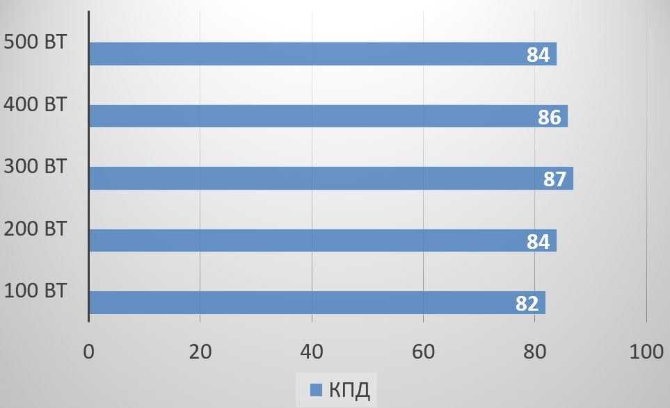 Уровень КПД полностью соответствует стандарту 80 PLUS Bronze с запасом, максимальные 87% демонстрируются при нагрузке 300 Вт.