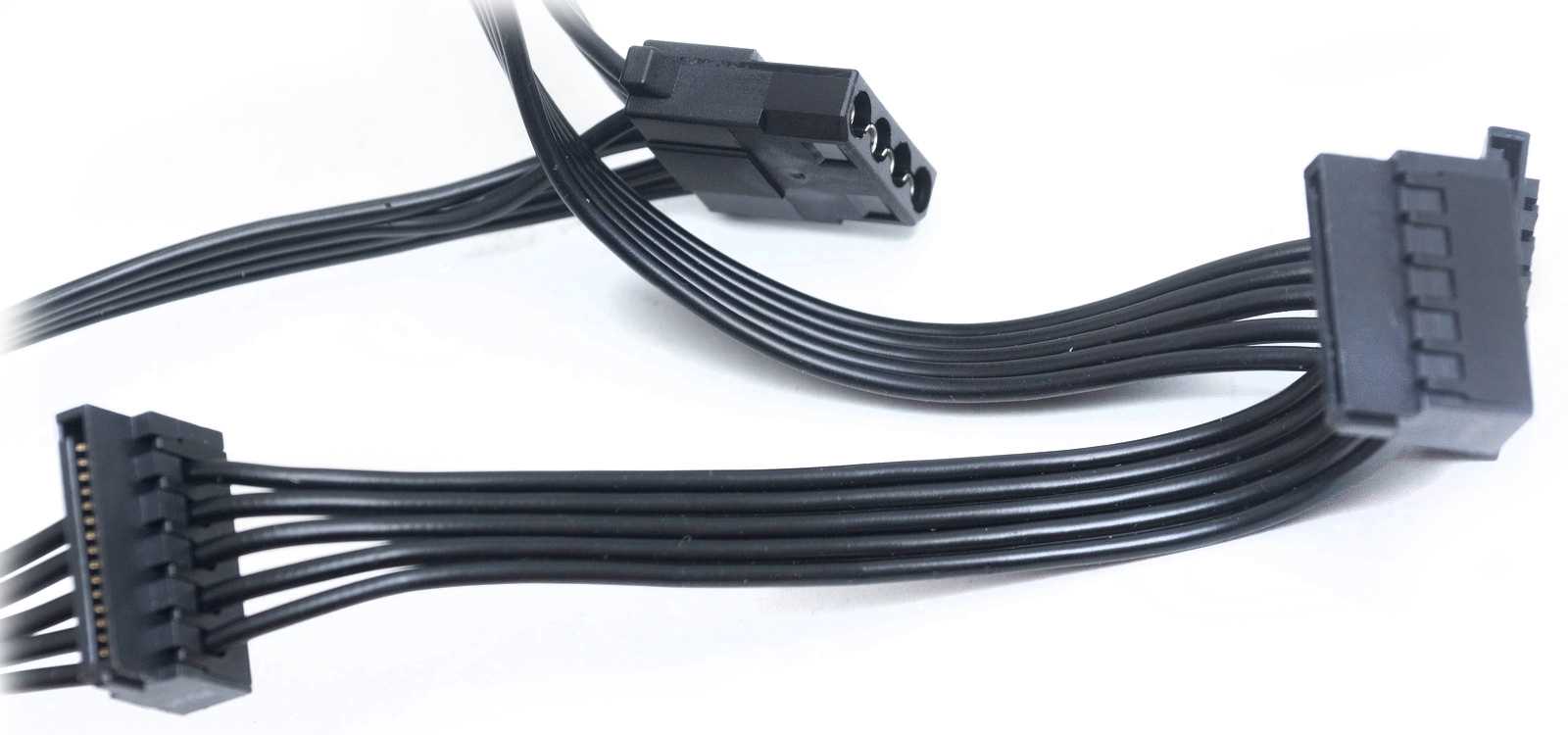 - Один кабель 1×SATA плюс 2×Molex и FDD: 45+12+12+12 см.