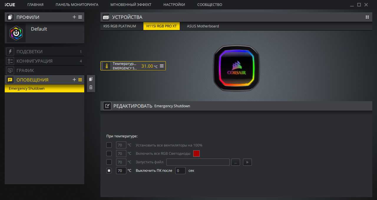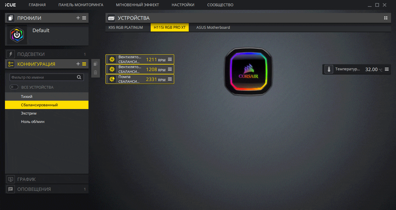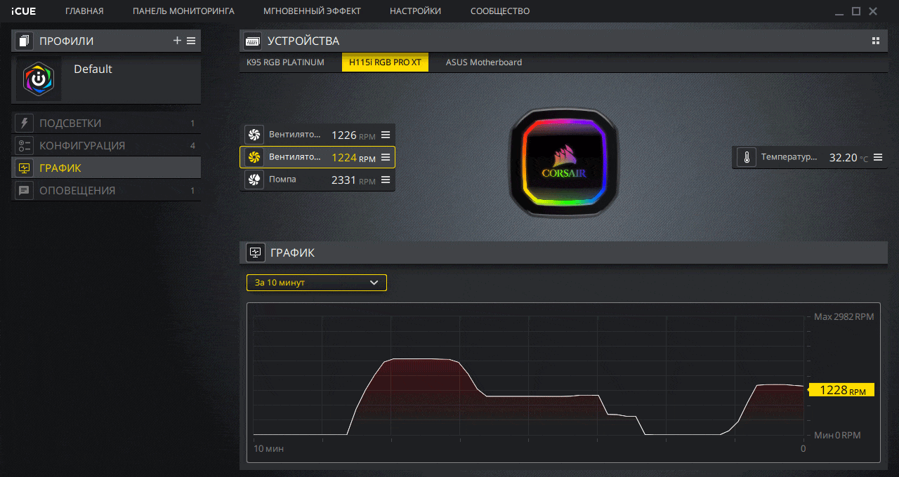 С точки зрения управления системой охлаждения Corsair iCUE — одна из самых удобных программ.