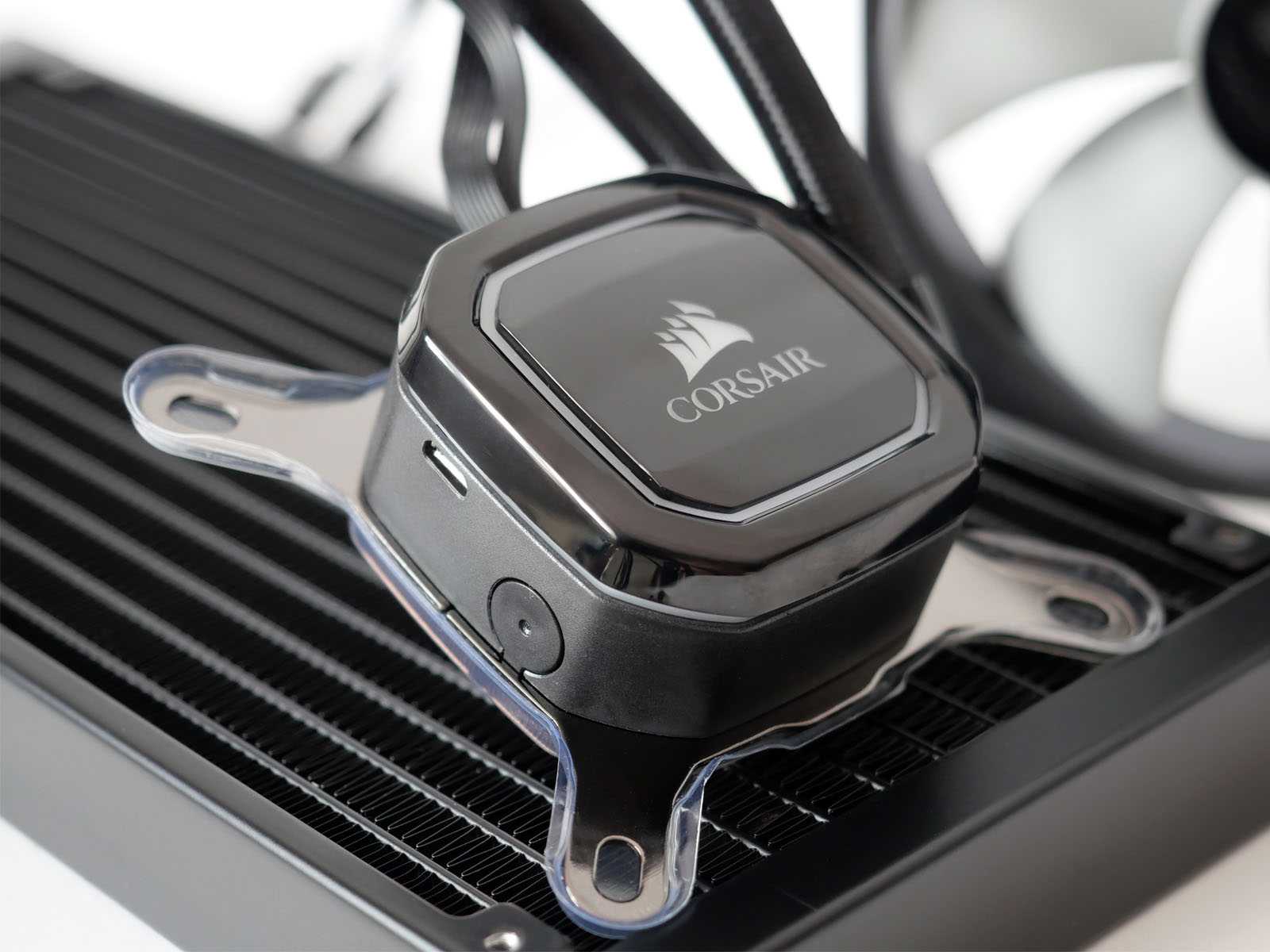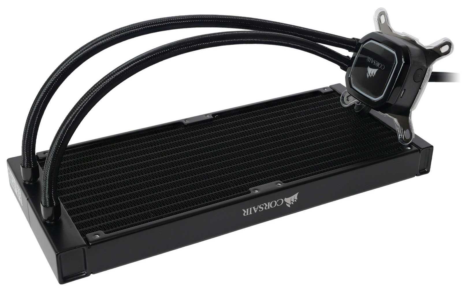 Принципиально новых решений в замкнутых контурах систем жидкостного охлаждения, не требующих обслуживания и дозаправки в гарантийный период, за последние годы не было. Ставшая стандартом де-факто компоновка из водоблока со встроенной помпой и вынесенного алюминиевого радиатора, соединенные вместе гибкими шлангами, используется и в Corsair iCUE H115i RGB PRO XT. Все элементы СЖО выполнены в строгом чёрном цвете, что будет хорошо гармонировать с другими комплектующими любых расцветок.