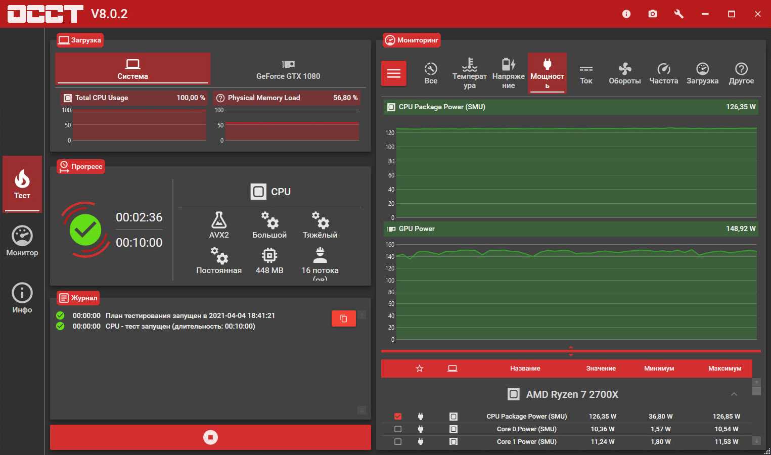 Перейдём к самому важному – тестированию эффективности охлаждения. Как мы помним, СВО установлено на разогнанный до 4,1 ГГц Ryzen 7 2700Х, TDP которого можно считать равным примерно 130 Вт