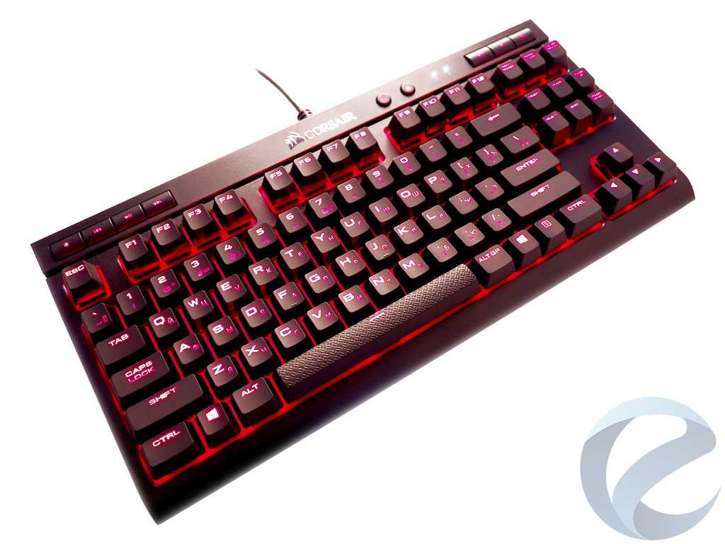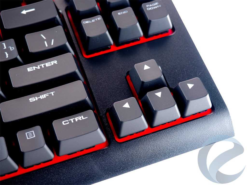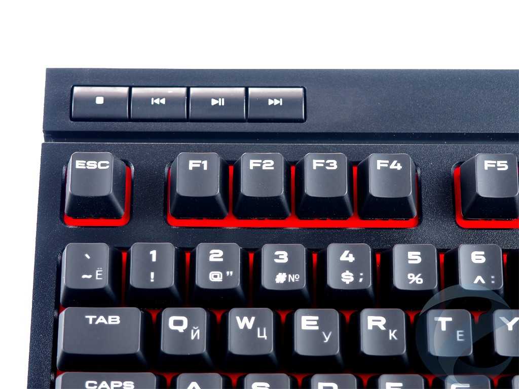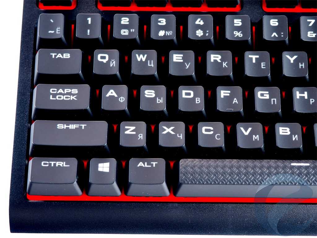 Узнаваемой фишкой клавиатур от Corsair стал их фирменный шрифт, который выполнен по методу лазерной гравировки. Символы отлично читаются, как в освещенной комнате, так и с приглушенным светом. Хотя разница в размерах кириллицы и латиницы довольно заметна, через пару часов использования неудобство пропадает.