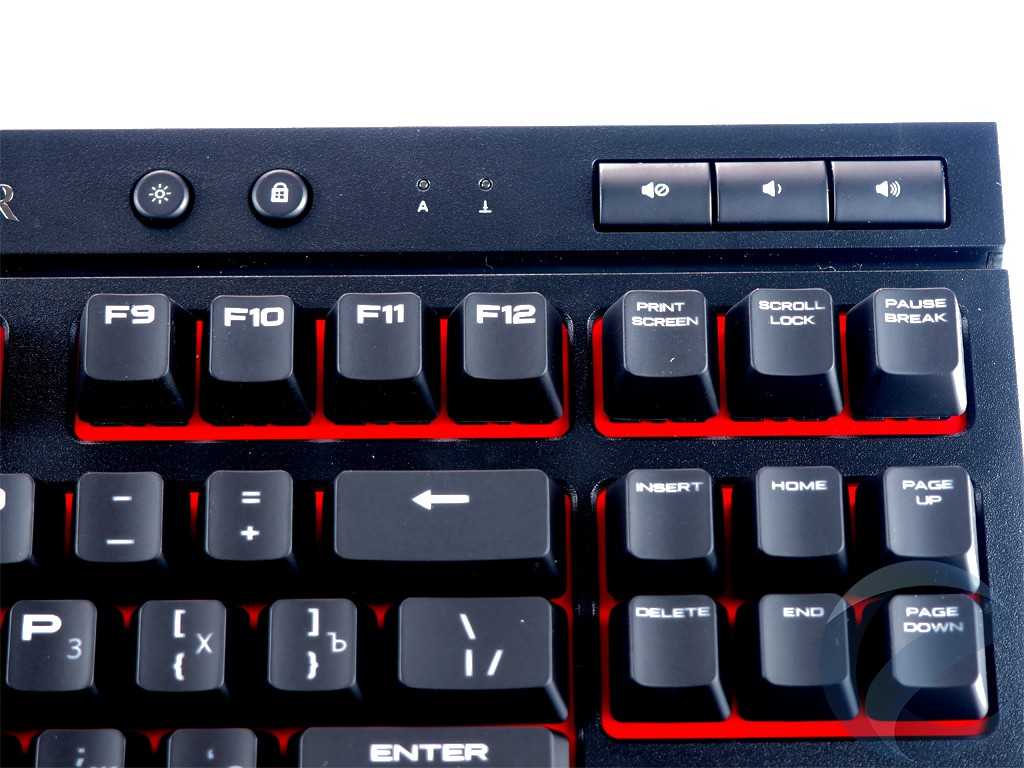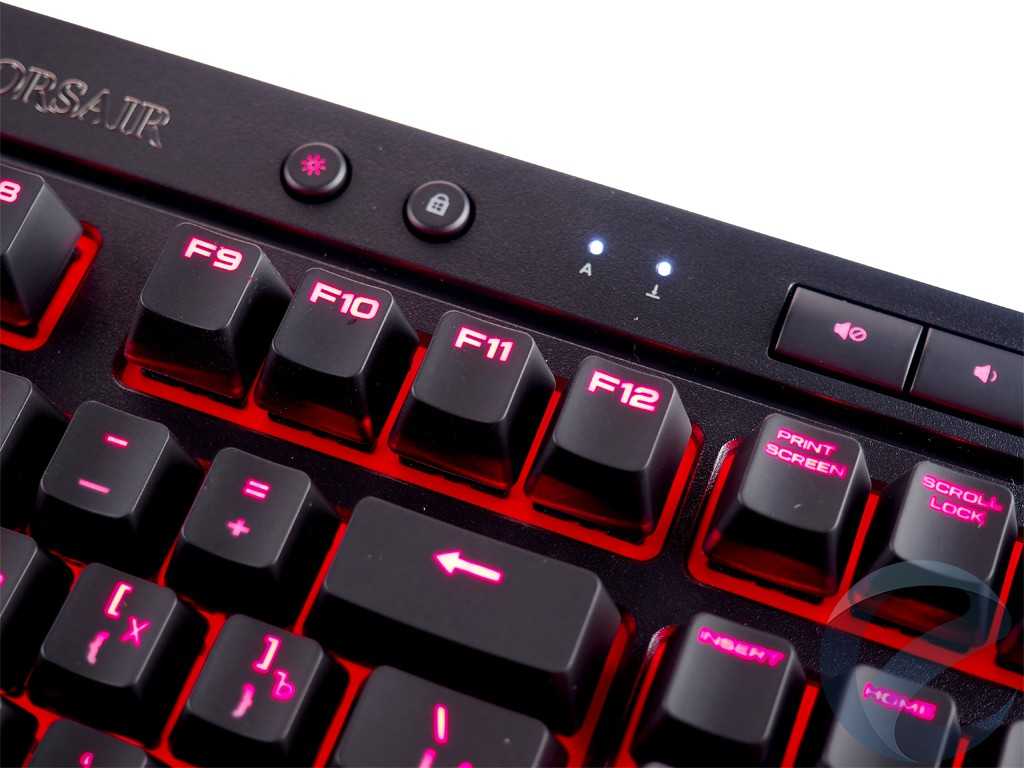 Подсветка ярко и равномерно освещает всю поверхность клавиши, символы явно заметны и легко читаются. Никаких искажений или мерцания при включенной подсветке не заметно. Цветовая гамма подсветки – красная.