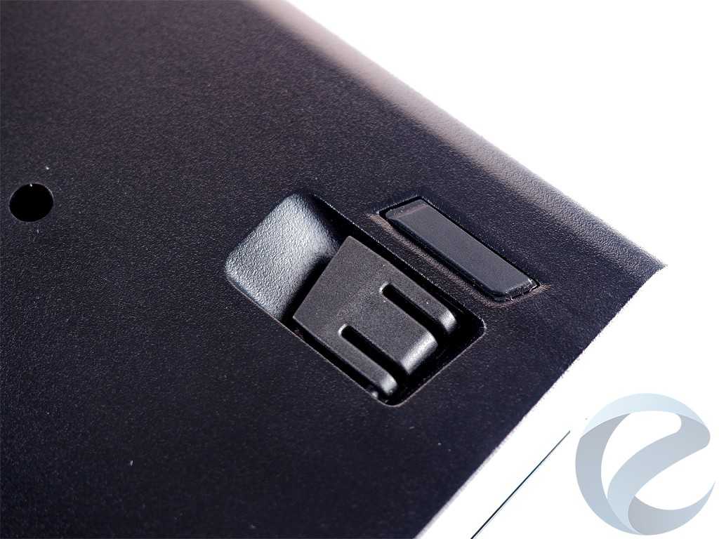 Здесь же, в нижней части тыльной стороны клавиатуры, находятся пазы для установки дополнительной подставки под запястье. В комплекте этот аксессуар не идет, и его нужно приобретать отдельно.