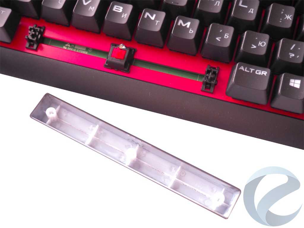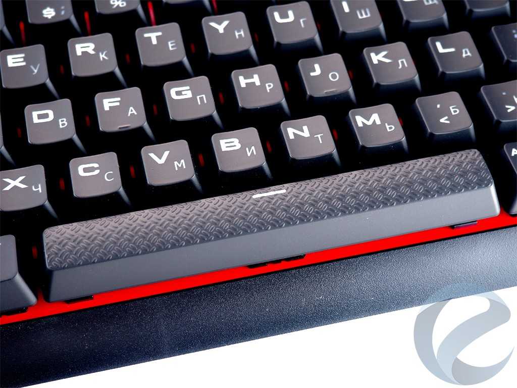 Общее количество клавиш — 96 с покрытием soft-touch, на котором, что не маловажно, практически не остаются отпечатки пальцев. Все клавиши оснащены механическими переключателями Cherry MX Red