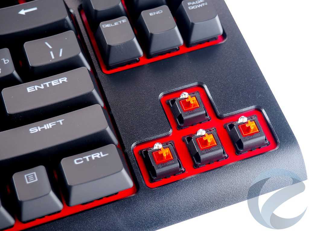 — 100% механических переключателей Cherry MX Red;