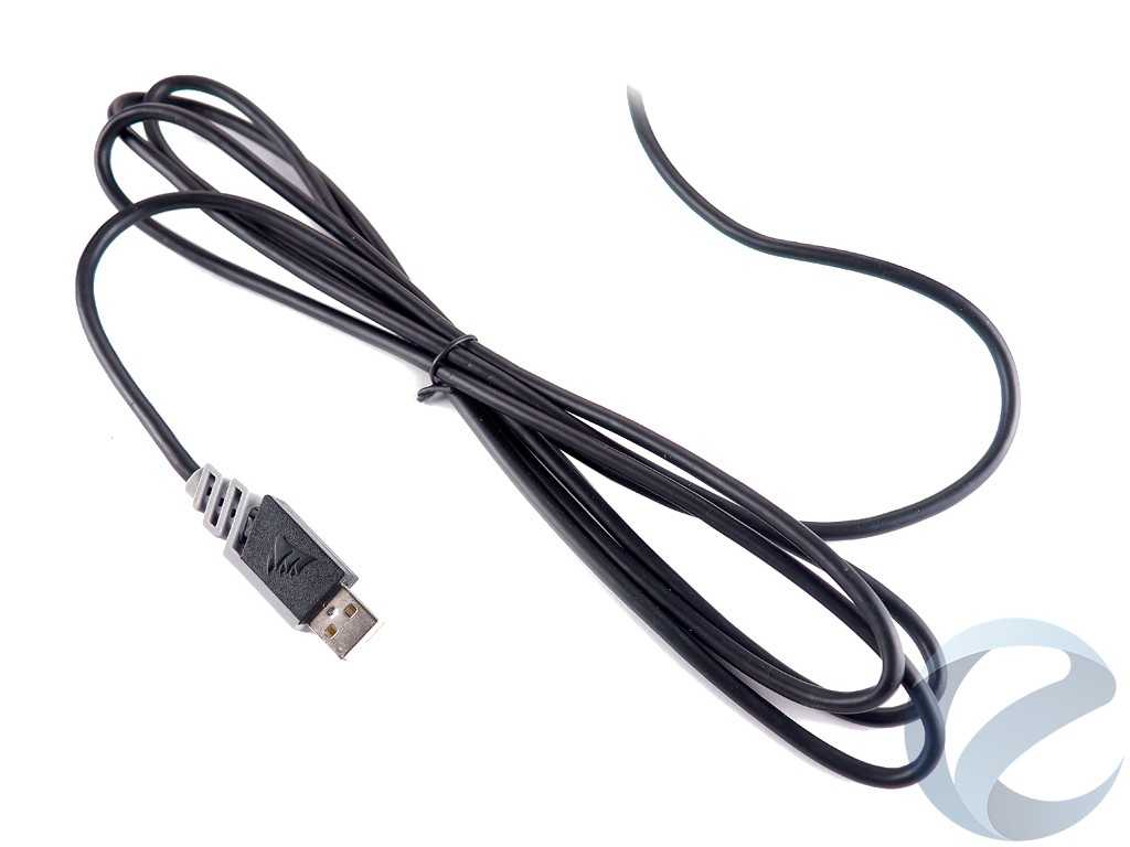 Кабель длинной 2.1 метра с прорезиненной защитой имеет среднюю жесткость и отлично держит форму. Защитное кольцов местестыковки провода с корпусомпредохраняетшнур от надломов. На противоположном конце кабеля находится обычный USB штекер для подключения к свободному USB порту вашего персонального компьютера.