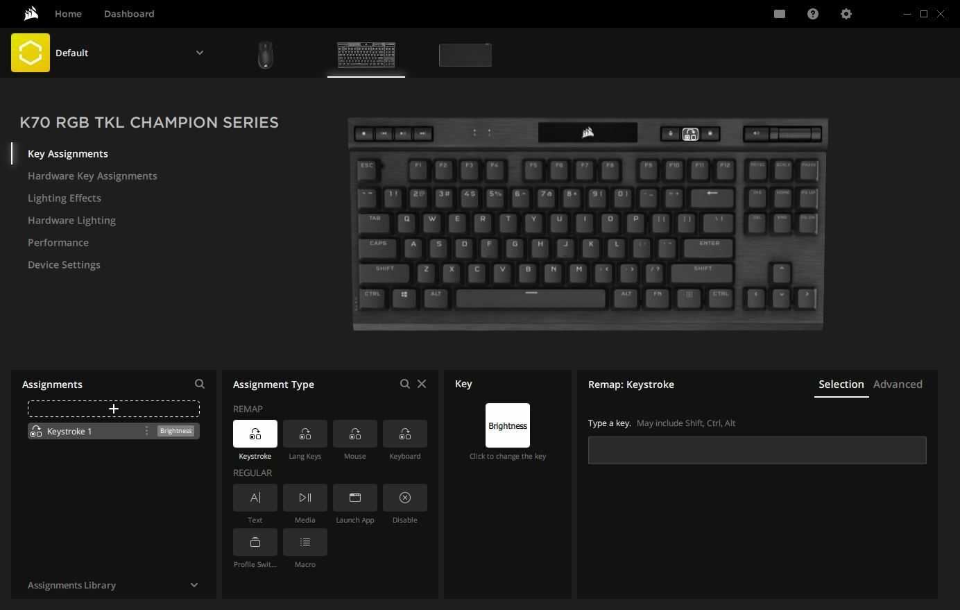 Вы можете пойти навстречу настройке. K70 RGB TKL может хранить до 20 пользовательских профилей клавиатуры, хотя это количество зависит от количества изменений, макросов и других факторов, необходимых для сохранения каждого из них. Большинство клавиатур поддерживают пять профилей, так что это огромное улучшение, особенно если вы обычно перемещаете несколько клавиш.