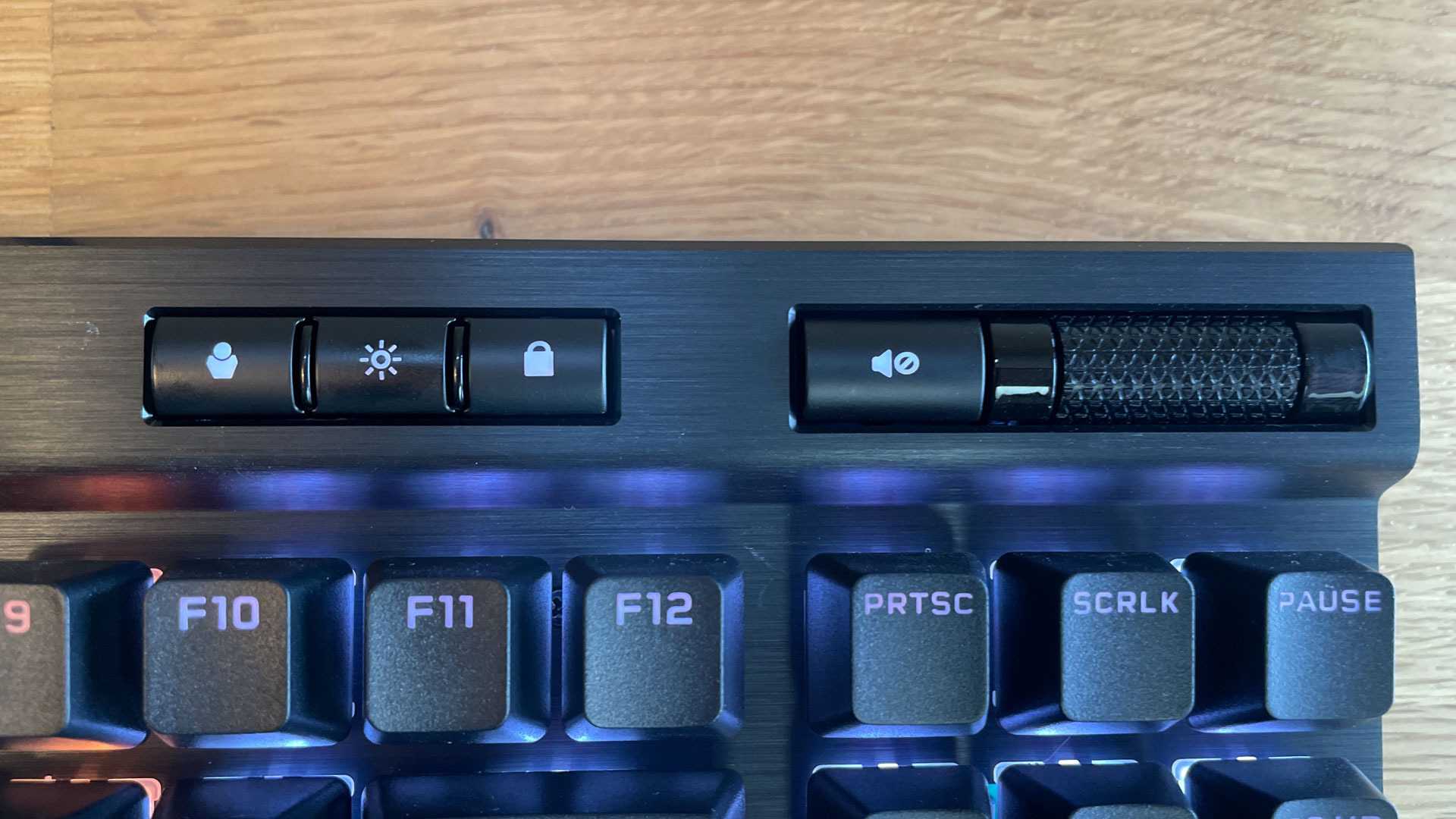 Как и K70 Mk. 2, K70 RGB TKL оснащен восемью кнопками — элементами управления мультимедиа, переключателем профиля, кнопкой яркости и переключателем игрового режима, а также мини-роликом регулировки громкости. На полноразмерной клавиатуре это довольно обычные, почти скучные элементы управления. Однако в данном случае все гораздо интереснее. Элементы управления мультимедиа и другие роскошные функции редко появляются на TKL, поскольку конструкции клавиатур считаются компактными. Corsair уже выпускает TKL с элементами управления мультимедиа, K63 Компактный, но это все еще редкая комбинация, которая давно назрела для широкого распространения.