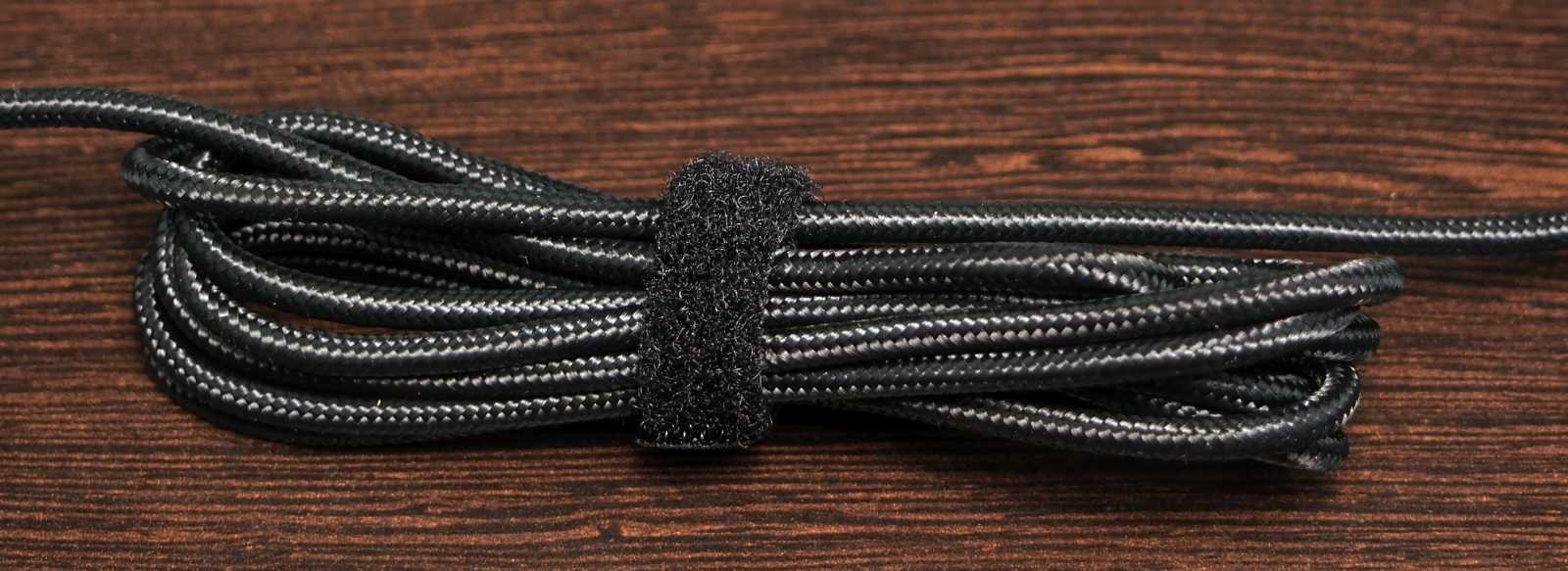 Длина провода Corsair Ironclaw RGB составляет 1,8 метра, чего должно хватить для самых различных условий эксплуатации игрового манипулятора. Кабель оснащается тканевой оплеткой, которая делает его несколько жестким и долго сохраняющим сопротивления изгибов. Присутствует кольцо на липучке, помогающее собрать и зафиксировать излишки провода.