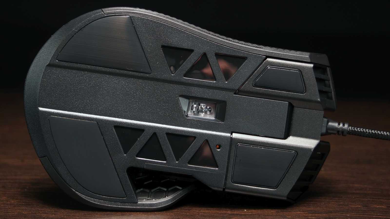 Благодаря своей фирменной форме, мышь Corsair Ironclaw RGB не похожа на игровые манипуляторы других производителей. В ней есть определенно что-то свое, индивидуальное, и пропорции корпуса мыши вкупе с линиями это подчеркивают. Железный Коготь оборудован 7 кнопками управления и колесиком прокрутки. Этот функционал включает в себя возможность переключения профилей мыши и изменение DPI для сенсора. Кнопки, отвечающие за это, находятся на верхней части корпуса Corsair Ironclaw RGBперед колесиком прокрутки. Две боковые кнопки мыши ориентированы под большой палец. Их функционал может быть назначен пользовательскими предпочтениями геймера.