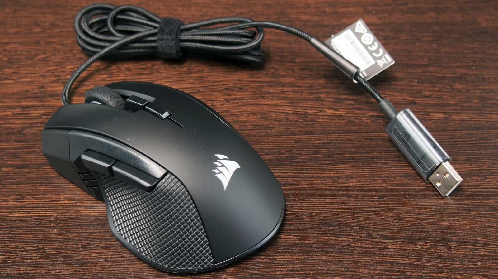 Интерфейс подключения Железного Когтя — USB 2.0. На конце сигнального провода Corsair Ironclaw RGB присутствует фирменная бирка производителя с серийным номером устройства.