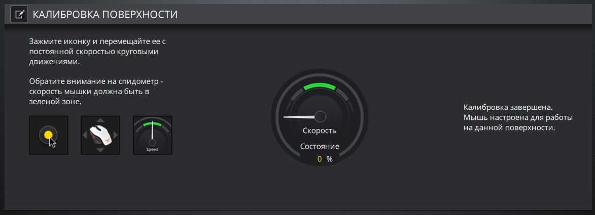 Калибровка поверхности – интеллектуальная настройка мышки под вашу игровую поверхность, при этом автоматически настраивается и высота отрыва. В нашем случае она составила около 3-х мм.