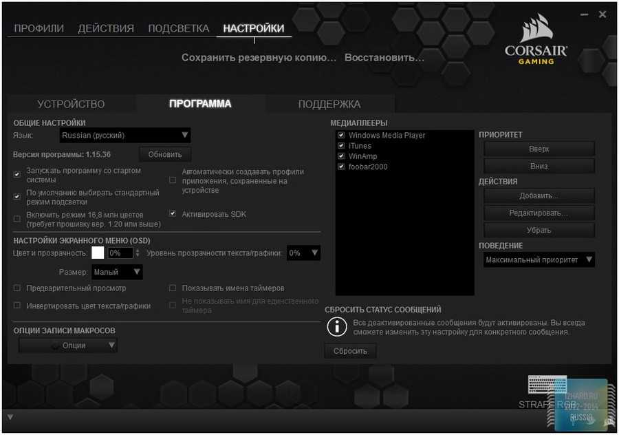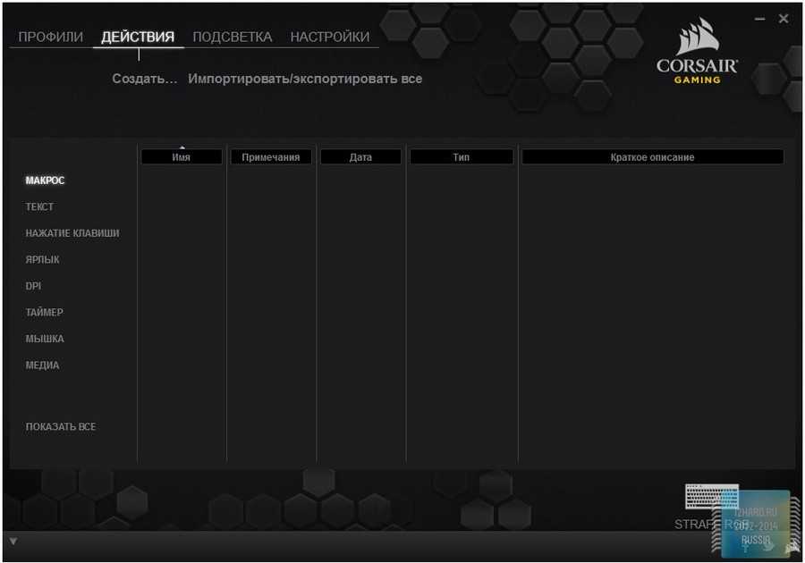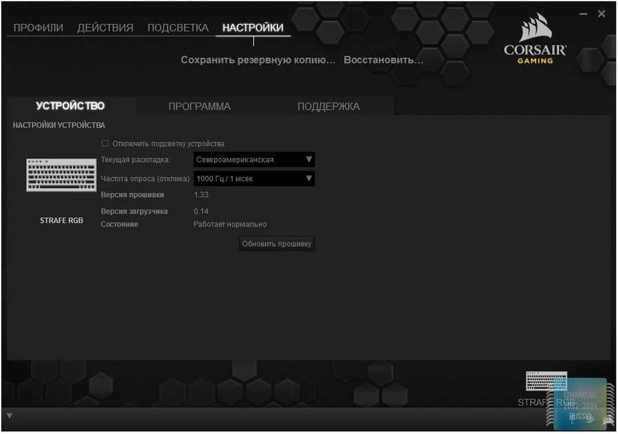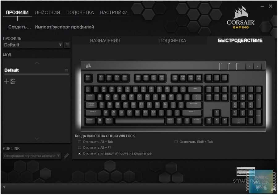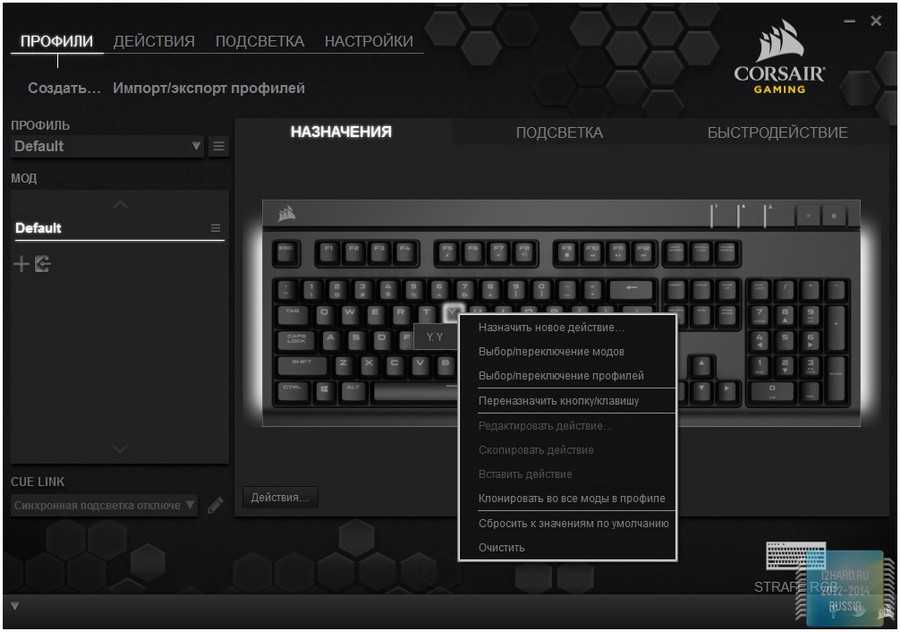 Всё управление клавиатурой происходит в фирменной программе Corsair Utility Engine. Программное обеспечение функциональное, но далеко не самое удобное, придётся немного разобраться. Кстати, диска в комплекте нет, так что скачать программу нужно будет с сайта производителя.
