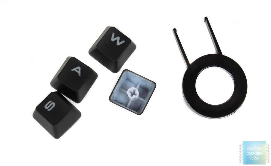 Как видим, комплект поставки очень даже богатый, что свойственно для продуктов компании из дорогого сегмента. Примечательно, что в комплекте есть набор съёмных кейкаповне только на наиболее используемые в большинстве игр кнопки WASD, но и на QFER, которые чаще всего задействуются в играх жанра MOBA.
