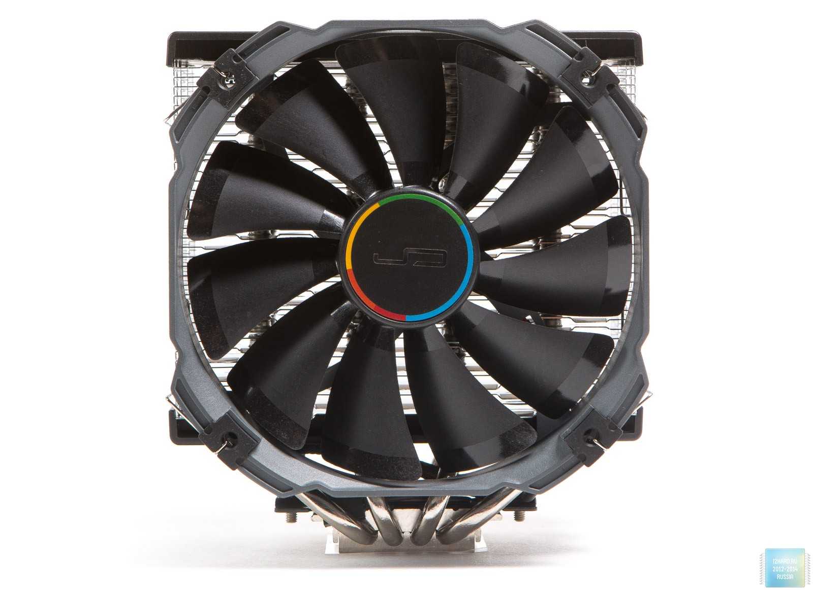 На радиаторе красуется хорошо знакомый нам вентилятор XT140, на всякий случай я повторю его спецификации: габариты составляют 140x140x13мм, вес равен 89 граммам, лопасти вращаются на скорости от 700 до 1300 ±10 % об/мин, сила воздушного потока — 64 кубических фута в минуту, уровень шума — 20~24 дБ. Кулер совместим со всеми современными платформами от Intel и AMD.