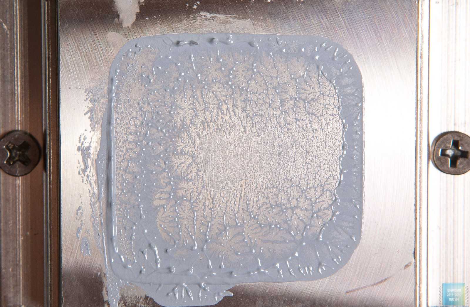 На данном фото хорошо проглядывается насколько сильно смещён радиатор относительно основания. Поверхность основания закрыта наклейкой, которую нужно удалить перед установкой