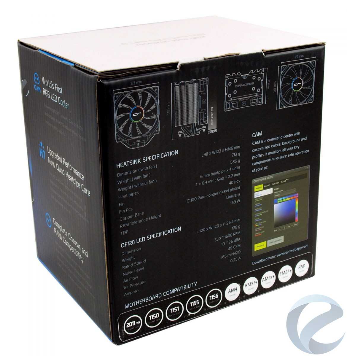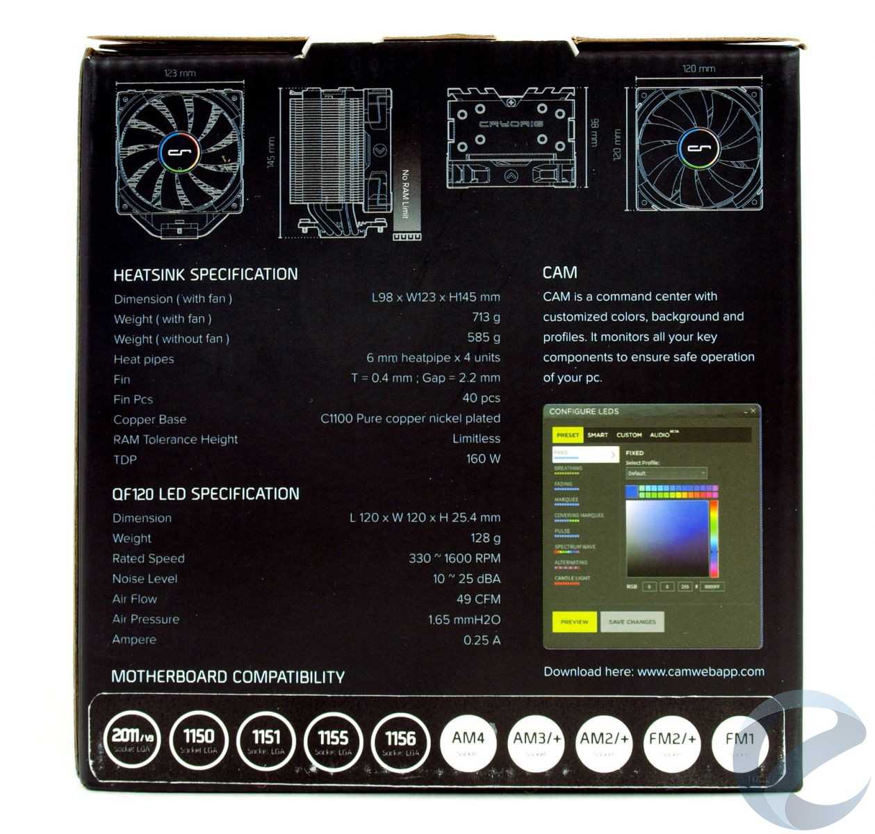 Новинка имеет габариты 123 х 98 х 145 мм при общей массе кулера 713 г, из них на радиатор приходятся 585 г. Модель Cryorig H7 Quad Lumi, в отличииот предшественника, получила совместимость с платформой AMD AM4. Кроме нее поддерживаются процессоры на сокете LGA2011 (-v3),1150, 1151, 1155, 1156 от Intel и модельный ряд AMD AM3/+, AM2/+, FM2/+, FM1. Кулер рассчитан на CPU с тепловым пакетом до 160 Вт!