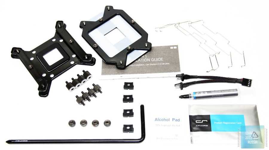 Что касается установочного пакета, то здесь наблюдается полный порядок и педантичная аккуратность. Каждый из элементов крепежа расфасован в разные отсеки коробки по отдельным целлофановым пакетикам, в соответствии с типом крепежа и принадлежностью к той или иной платформе.