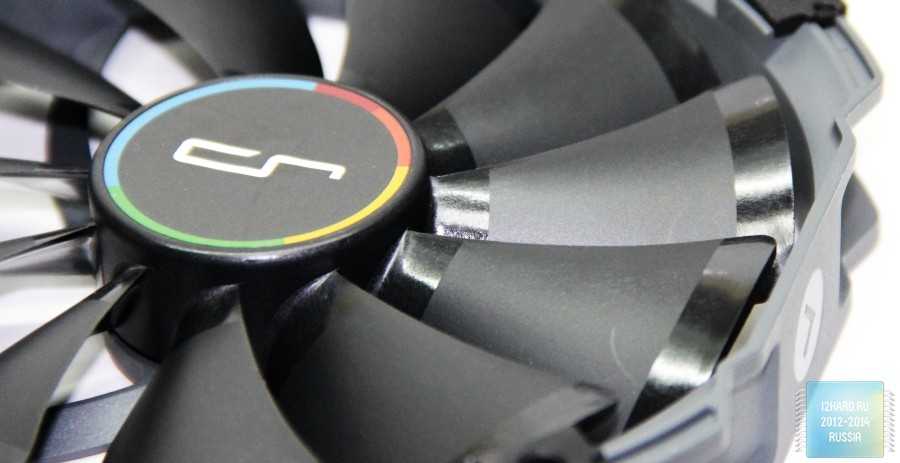 Скорость вращения вентиляторов в автоматическом режиме варьируется от 700 до 1300 об/мин. Уровень шума при этом может доставлять значения от 19 до 23 дБА. Максимально возможный воздушный поток 76 CFM.