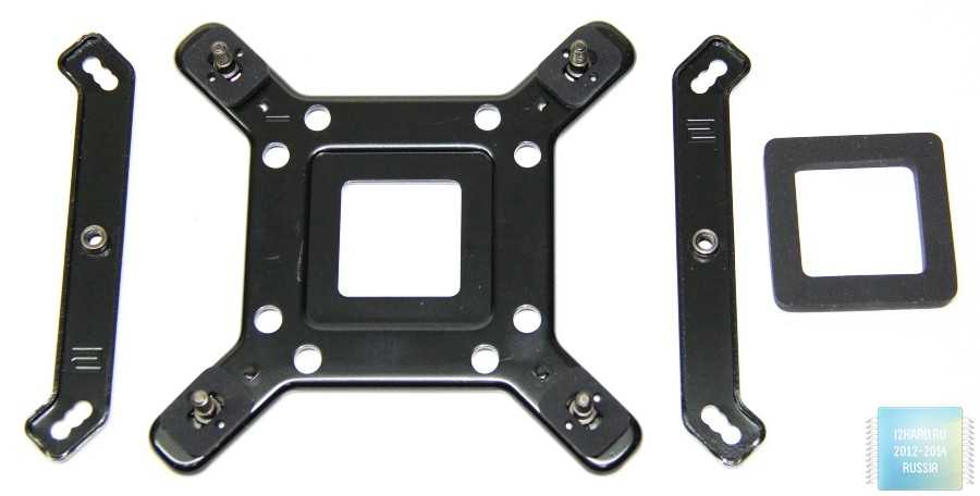 - металлическая пластина, две крепежные лапы и резиновая прокладка для платформ Intel;