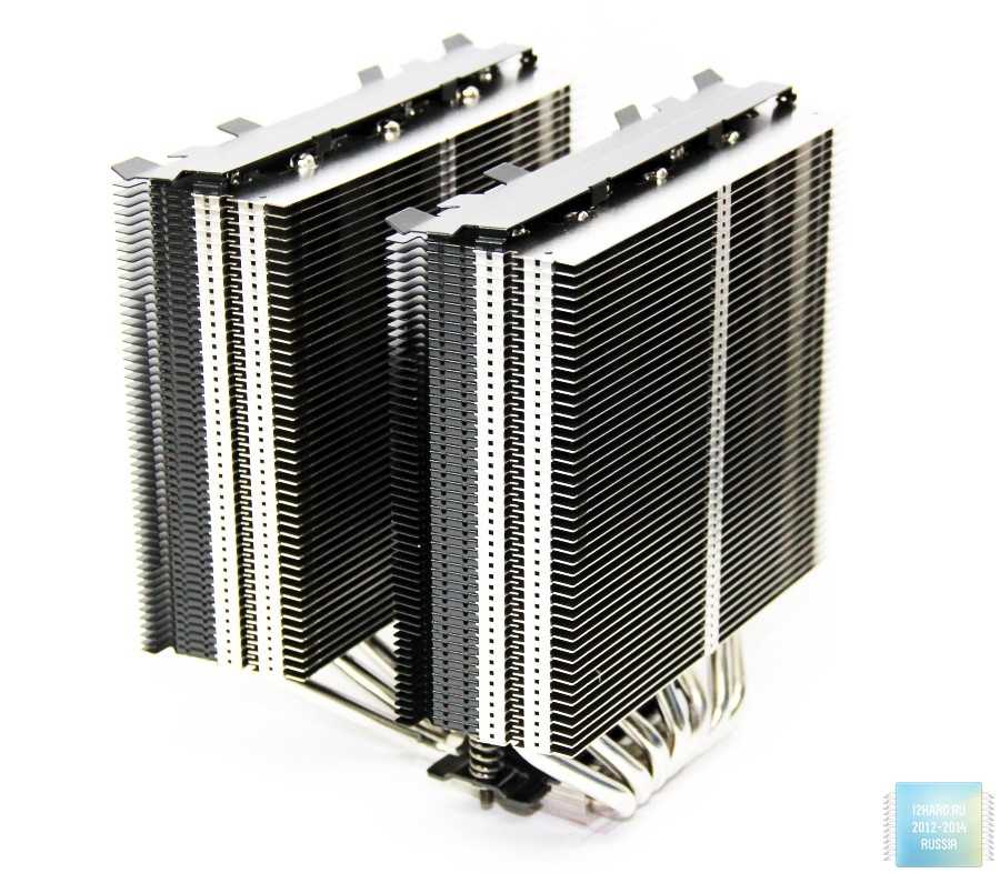 Cryorig R1 Ultimate представляет собой типичный двухсекционный кулер башенного типа, где каждая из секций радиатора оснащена своим вентилятором.