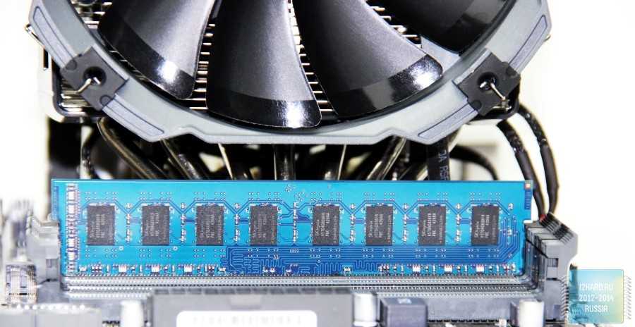 Кулер перекрывает только первый слот для модулей памяти, но при этом его крайний вентилятор закреплен настолько высоко, что используя Cryorig R1 Ultimate можно в первый слот поставить не только обычную память стандартной высоты, но и задействовать в данном случае планки памяти с невысокими радиаторами.