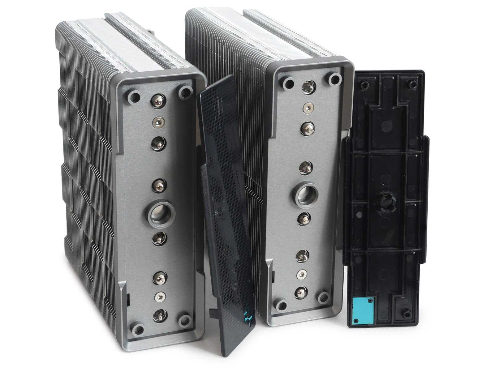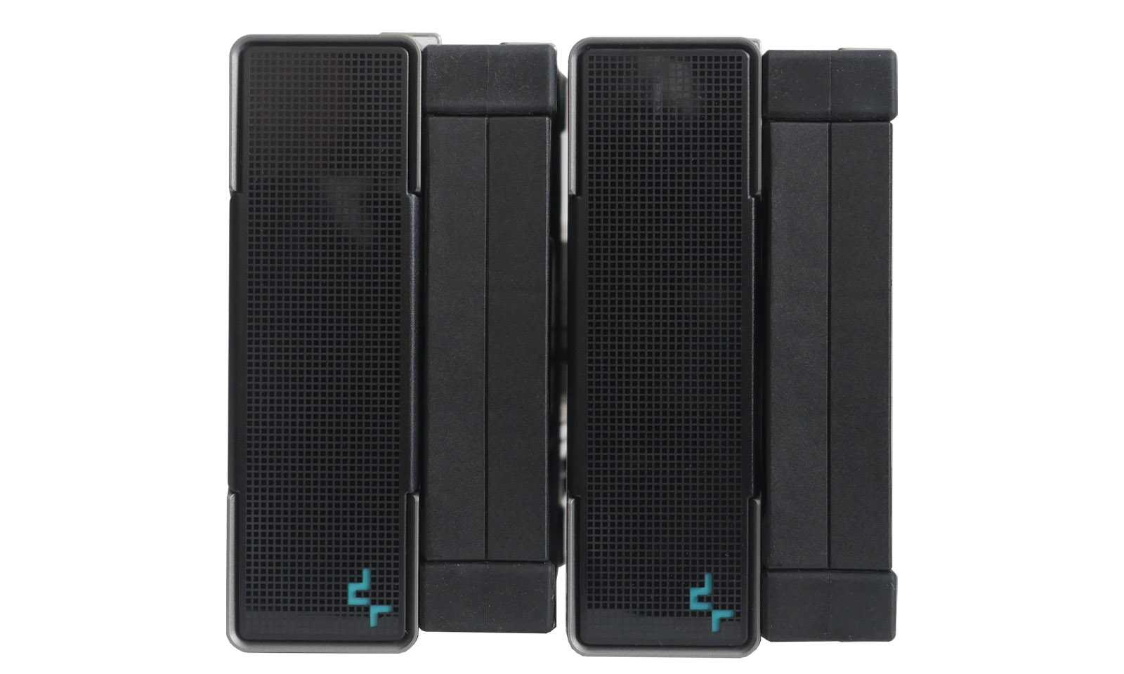 Один помещается прямо по центру между пластин охлаждения, а второй закрепляется на внешней стороне. Вместе они «продувают» радиатор в едином направлении.