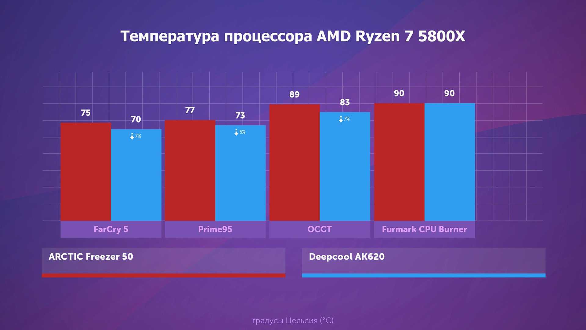 Но, что еще важнее, AK620 обеспечивает эффективное охлаждение. Жаль, у нас не с чем было его сравнить, но показанные результаты очень хороши.