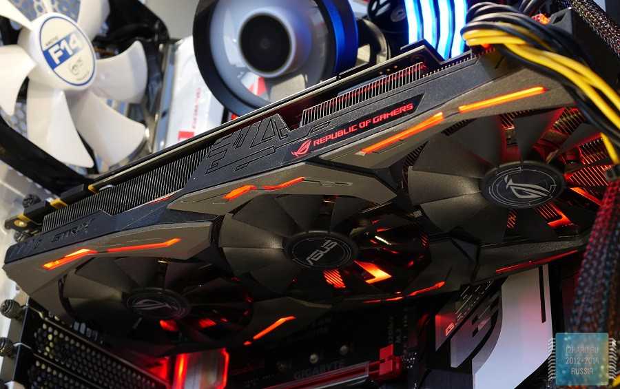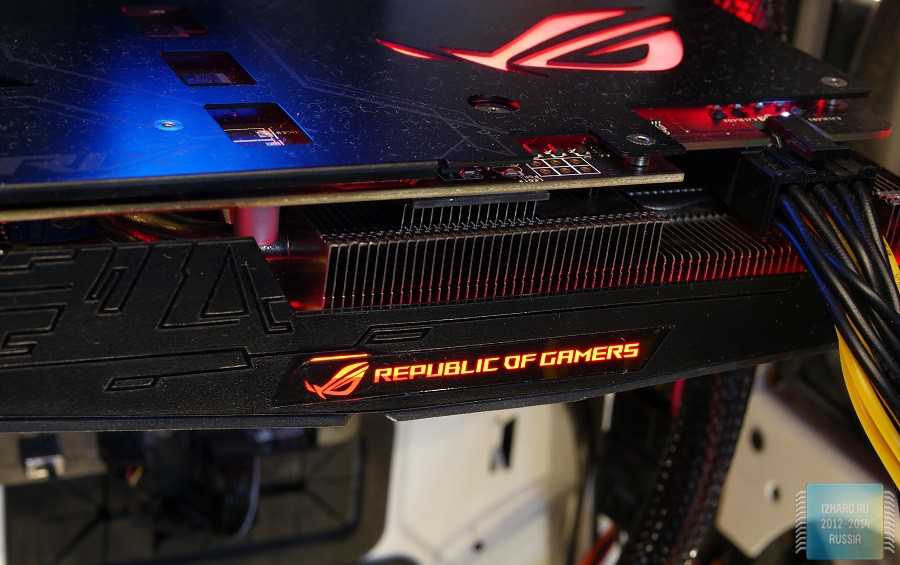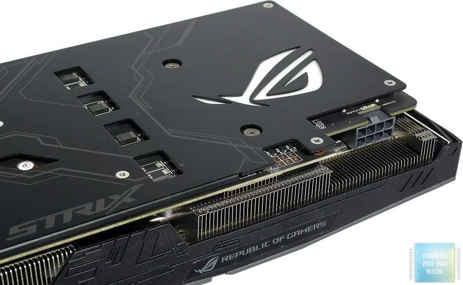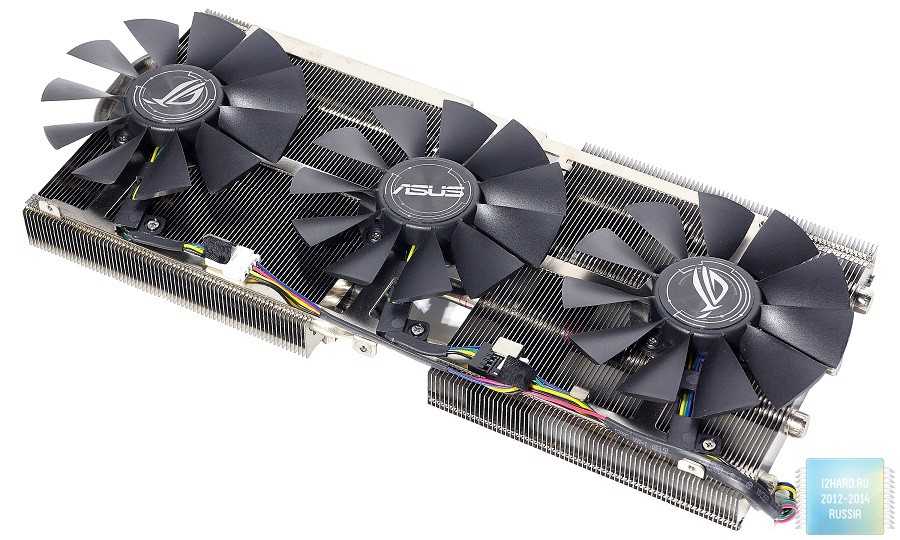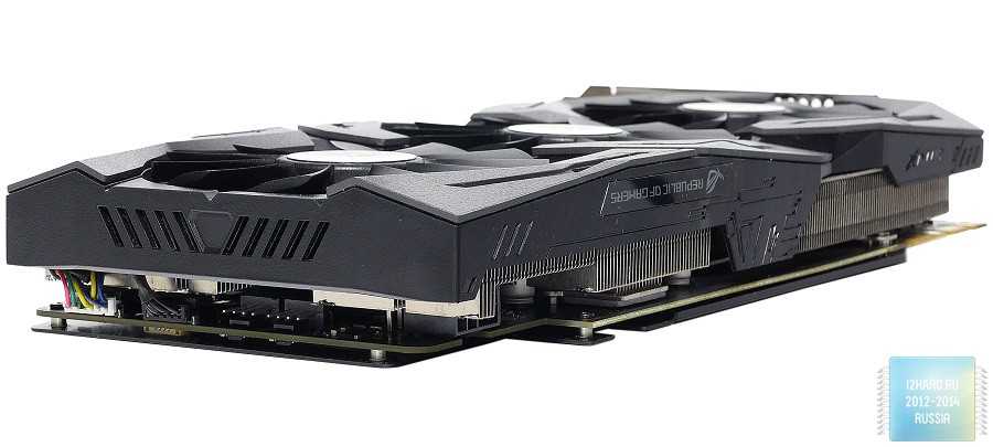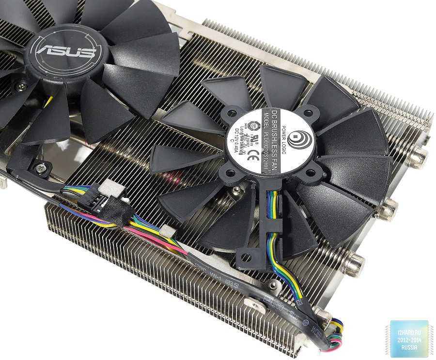 Многие ругают ASUS за применение технологии прямого контакта, так как с уменьшением площади чипа становится все более сложнее использовать большое количество тепловых трубок. Несмотря на такие замечания, производитель продолжает прибегать к данномурешению. Справедливости ради, стоит отметить, что частично трубки все же отводят тепло от соседних, которые контактируют с графическим ядром. Такой подход снижает общую эффективность, но в итоге у ASUS все равно получается сдерживать температуру до конкурентоспособных значений.