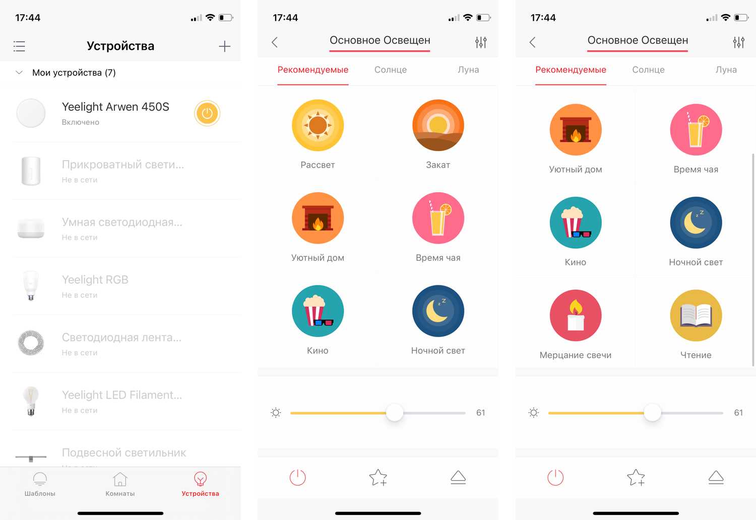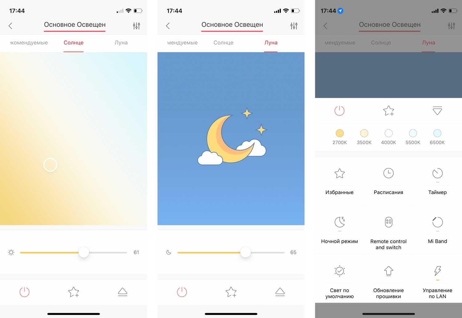В режиме «Солнце» перед вами открывается не только возможность управлять цветовой температурой, но и ее яркостью. Соответственно и возможность подбора оптимального освещения в соответствии со своими вкусами и задачами.