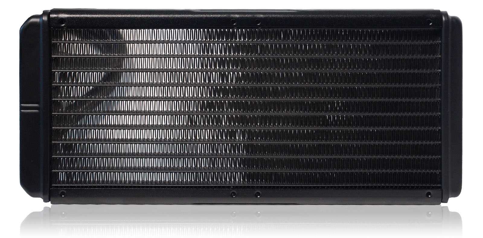 В составе Enermax AquaFusion 240 используется алюминиевый радиатор, размеры которого 274 x 120 x 27 мм. В данном случае речь идет о размерах каркаса. Полезное тело чуть меньше. Он набрано тринадцатью плоскими каналами толщиной 16 мм с плотным заполнением пространства гофролентой.