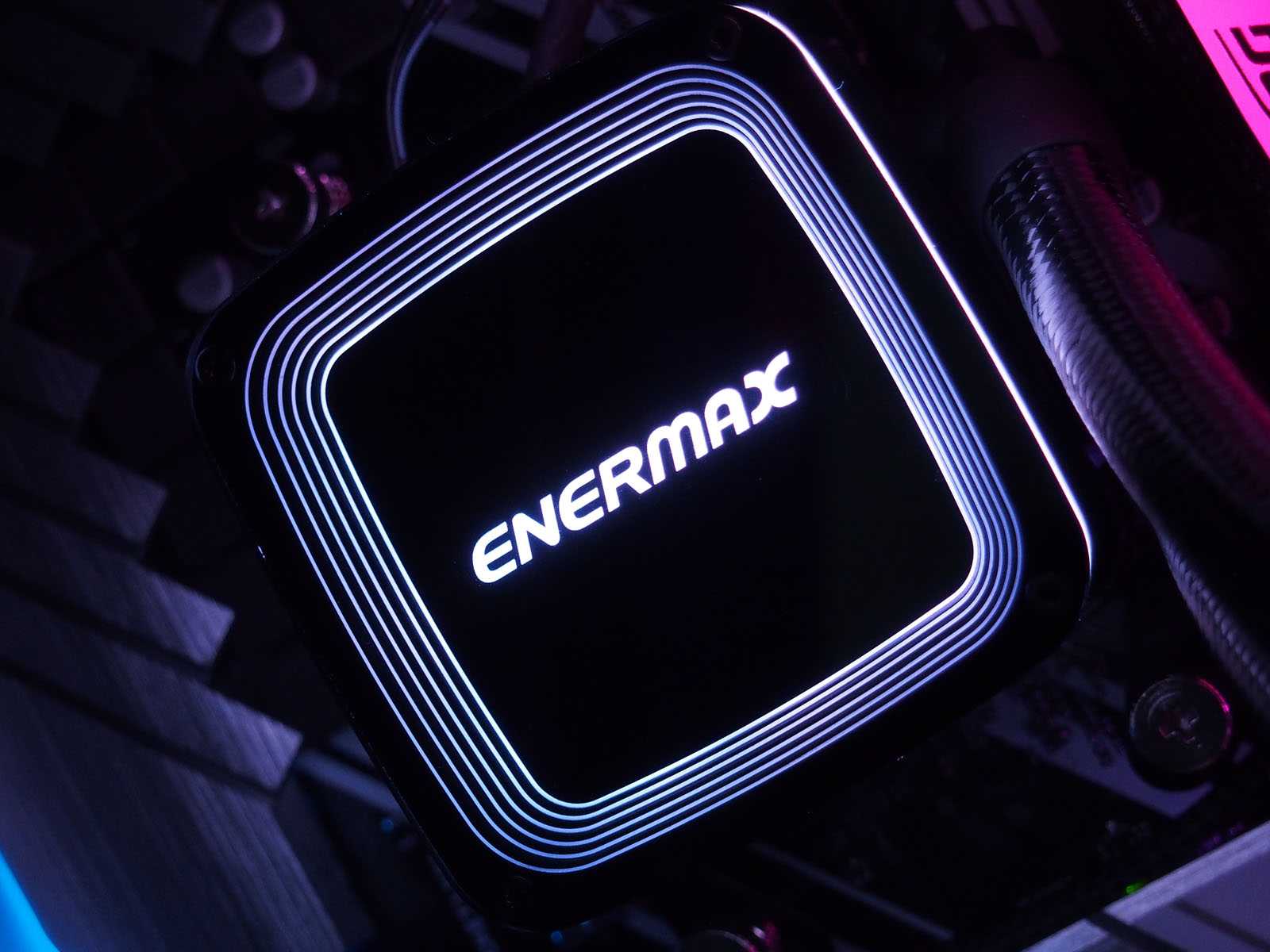 На каркасе радиатора на обеих длинных сторонах сделана надпись ENERMAX краской белого цвета.