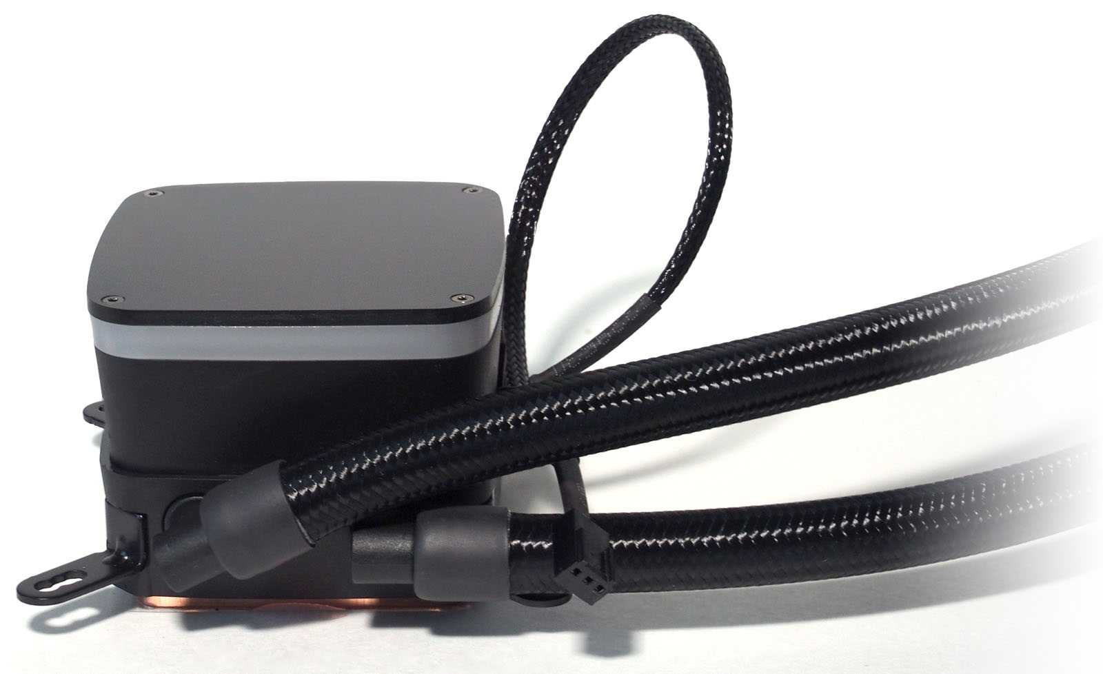 Конструкция современных AIO-систем жидкостного охлаждения для центральных процессоров схожа — это водоблок, совмещающий в одном корпусе теплосъёмник, насос и декоративные элементы подсветкиплюс соединенный с ним гибкими шлангами радиатор, эффективно рассеивающий тепло комплектными вентиляторами.