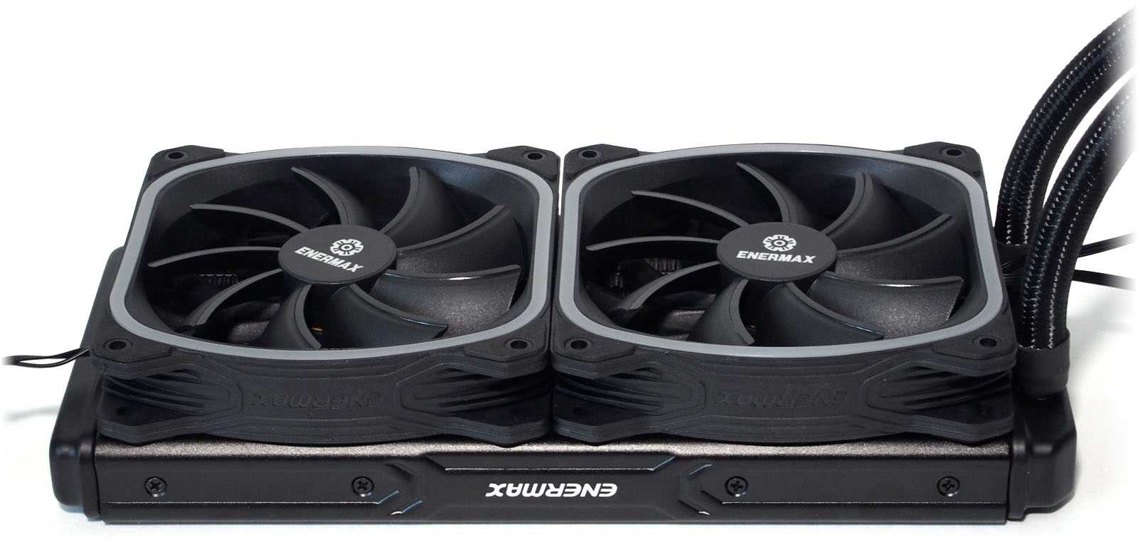 При автоматическом управлении вентиляторами температура под нагрузкой держалась около отметки в 62 градуса Цельсия при TDP процессора 126 Вт, что сопоставимо с результатами конкурентов в лице Thermaltake Water 3.0 240 ARGB Sync и ASUS ROG Ryuo 240. При этом шум системы охлаждения достигал 34 дБА (с расстояния 1 м), так как вентиляторы разгонялись до ~1400 оборотов в минуту.