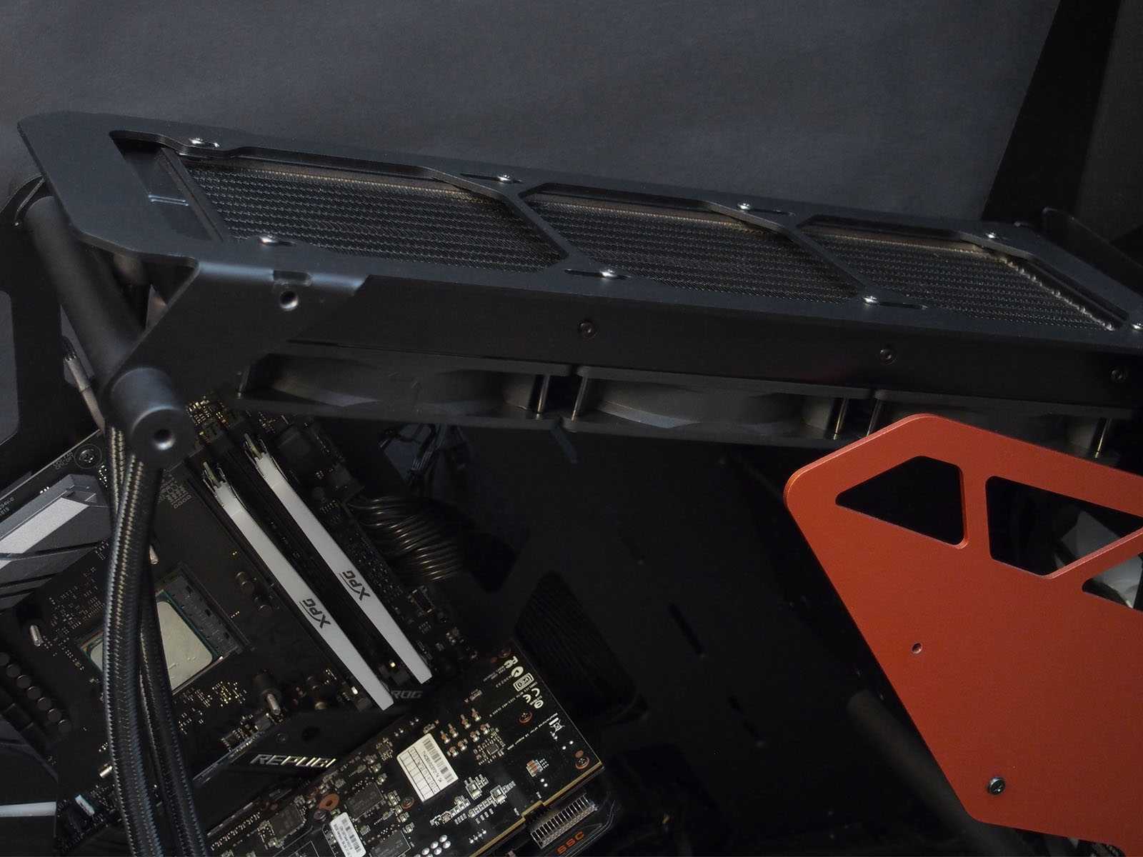 Крепление 360-мм радиатора осуществляется в зависимости от предусмотренных производителем корпуса ПК посадочных мест. В корпусе Cougar Conquer тестового стенда таковое крепление предусмотрено в верхней части.