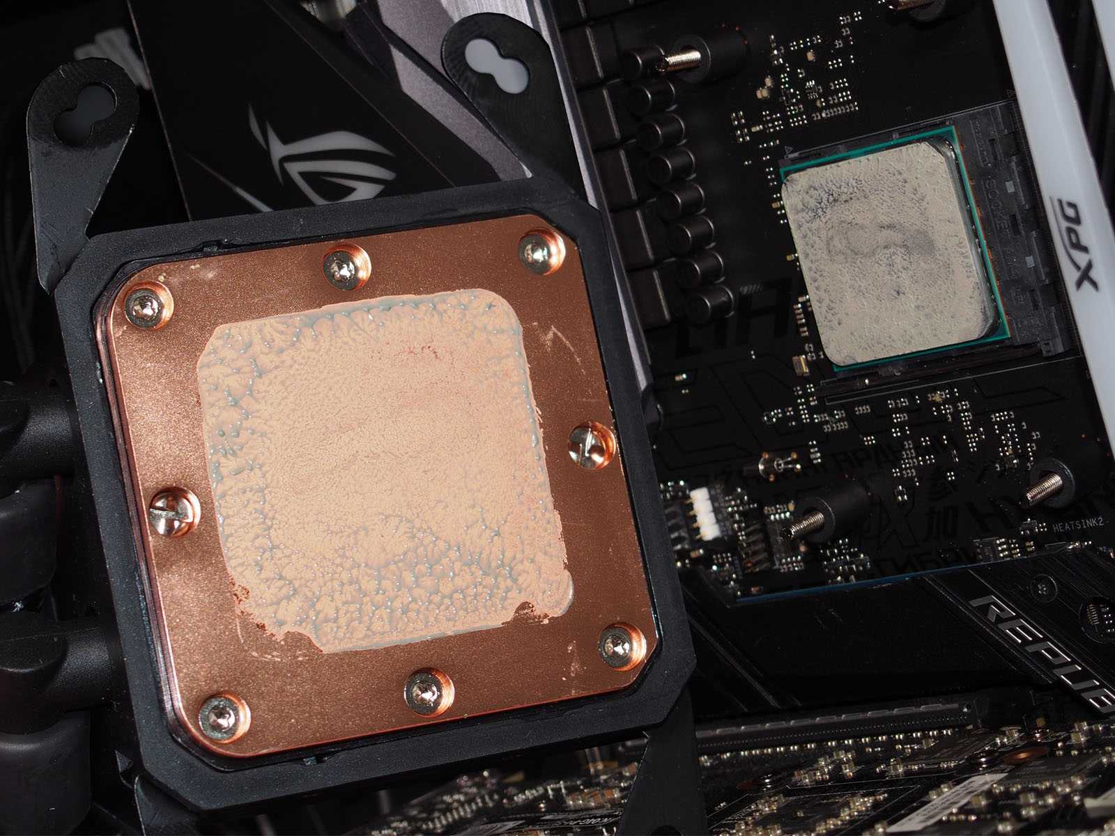 Стенд, на котором тестировалась СЖО, базируется на материнской плате с сокетом AM4 и серийном экземпляре процессора AMD Ryzen 2700X. По умолчанию на водоблоке прикручены металлические направляющие для сокетов Intel, поэтому их необходимо заменить на комплектные универсальные для сокетов AMD.