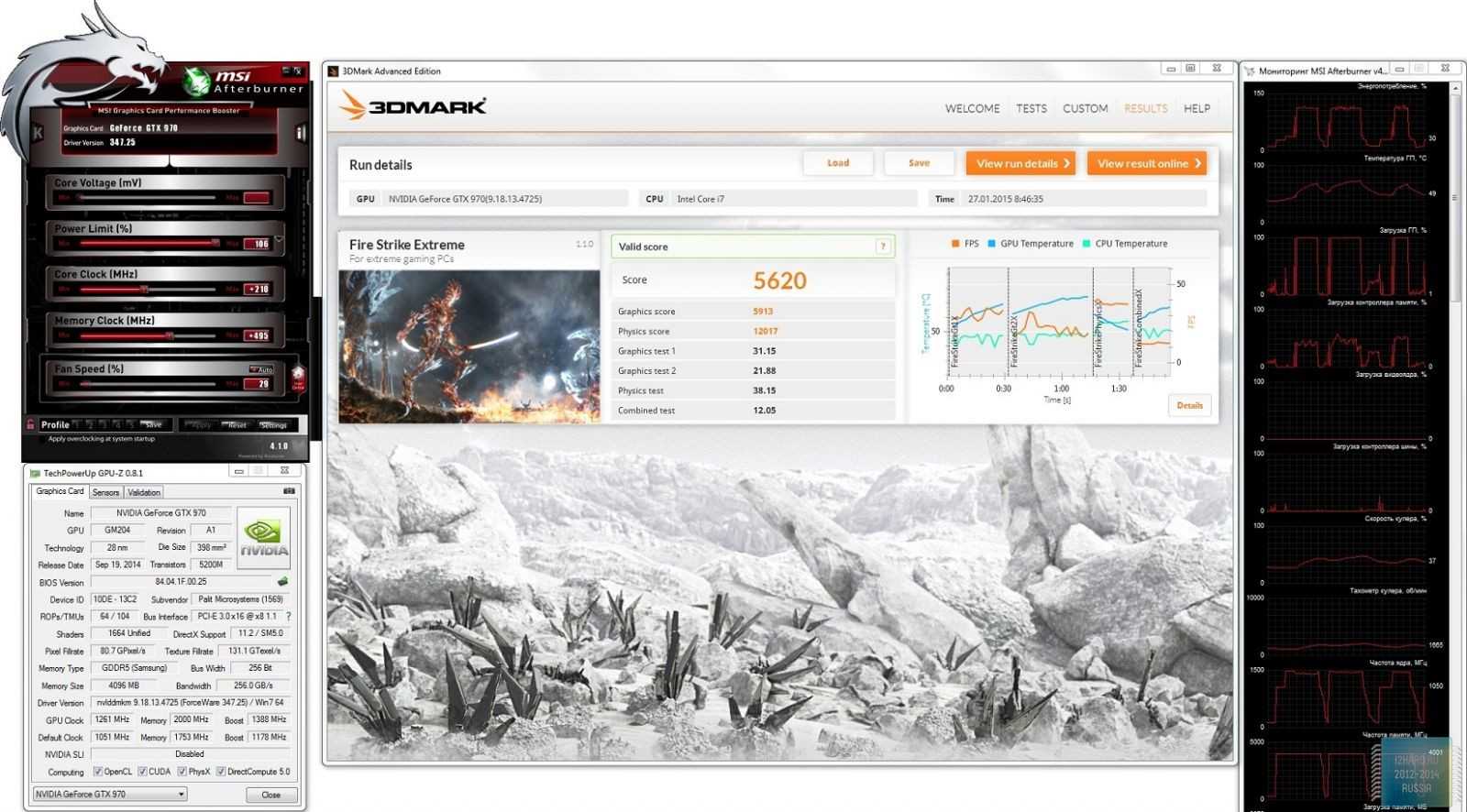 Для разгона использовалась утилита MSI Afterburner, разгон осуществлялся без поднятия напряжения: