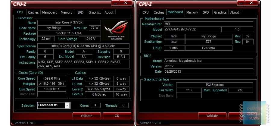 - Процессор: Intel Core i7-3770K (3500 МГц);