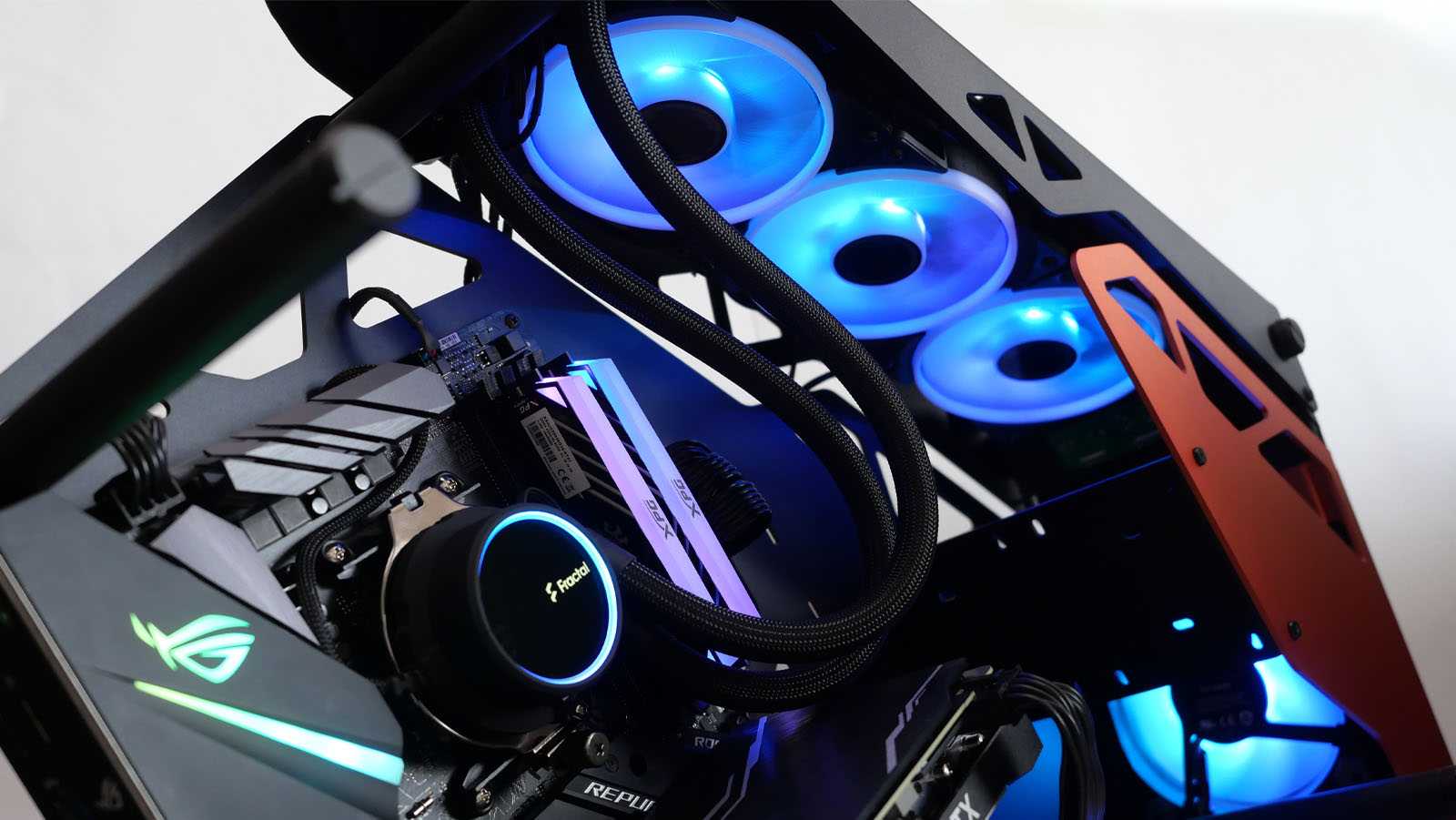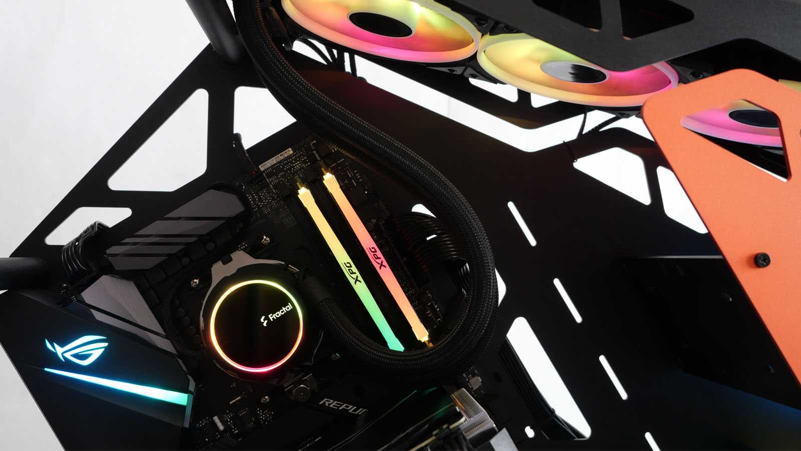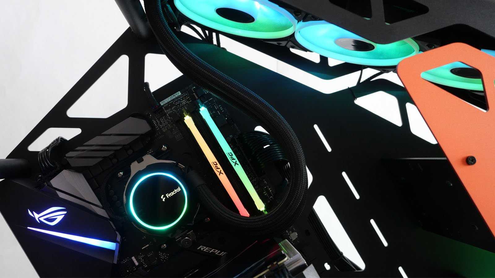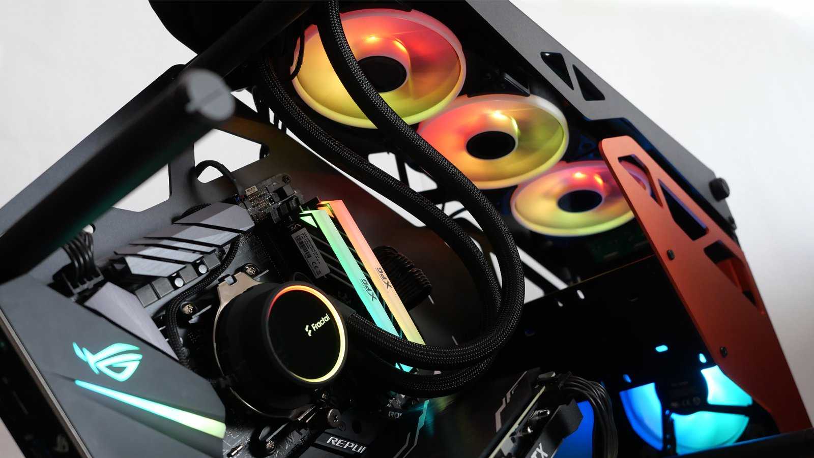 - Вентиляторы и водоблок с приятной управляемой ARGB-подсветкой;