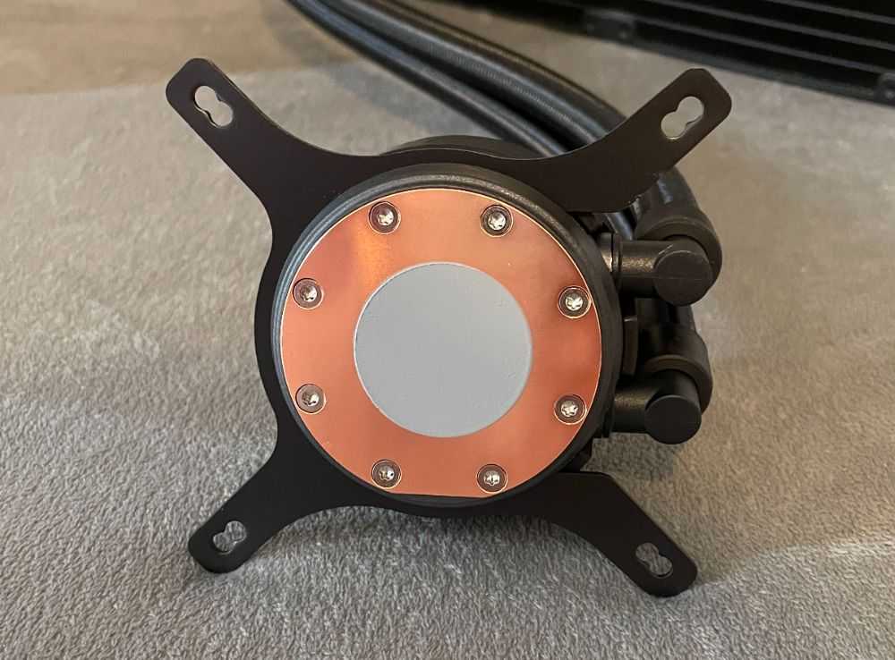 Система жидкостного охлаждения базируется на проверенном временем решением от Asetek, а следовательно, имеет стандартизированный крепёж. Это — большой плюс. При необходимости возможно будет докупить необходимые рамки при смене сокета. Также это позволяет использовать СЖО с процессорами Threadripper, с которыми нужная рамка для Asetek-совместимых систем охлаждения идёт в комплекте.