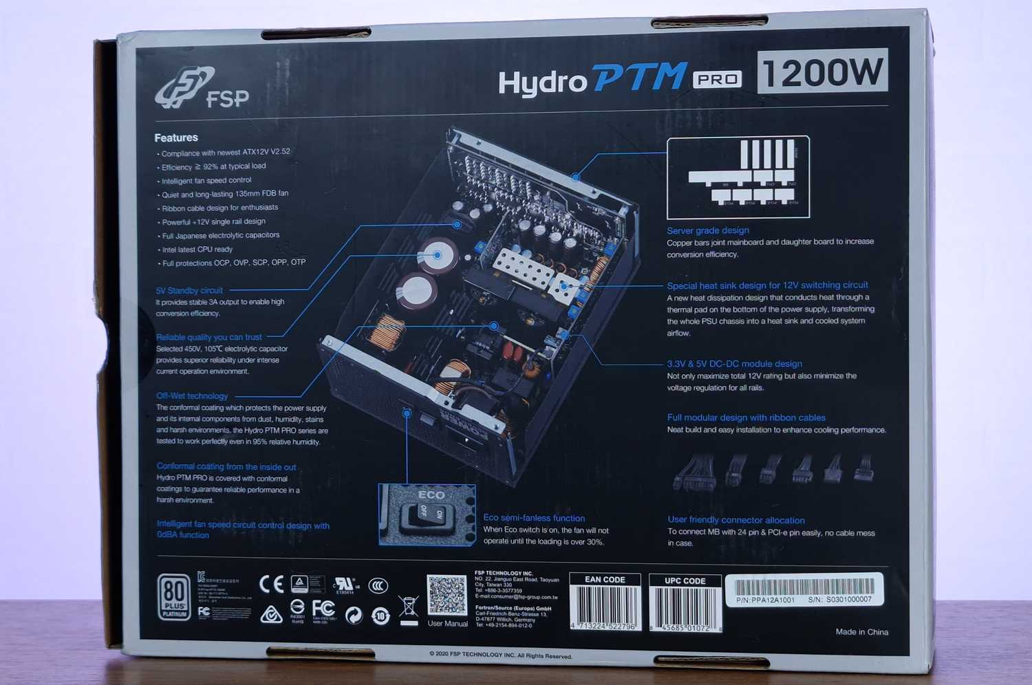 OVP есть, UVP есть, OPP есть, SCP есть, OTP есть, топология мостовая APFC, модуль преобразования DC-DC и допускает не более одного процента колебаний вольтажа. Эффективность — до 94% при нагрузке 500 Вт. И гарантия, простите на минуточку, 10 лет. Стоит ли объяснять дальше, почему блочок стоит под 300 баксов?