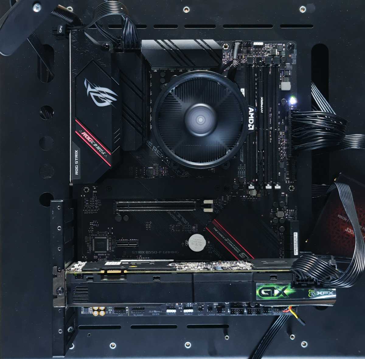 За тестовый стенд в этот раз я благодарю компанию ASUS, в частности — за предоставленную материнскую плату ASUS ROG B550-I. Всё это собрано в тестовом стенде DimasTech, точную модель которого я добавлю, как только смогу, с процессором AMD Ryzen 3 3100 на стоковом кулере и, с одной плашкой ОЗУ HyperX DDR4 32 ГБ 3600 Мгц, и накопителем Apacer AS350X 256 ГБ.