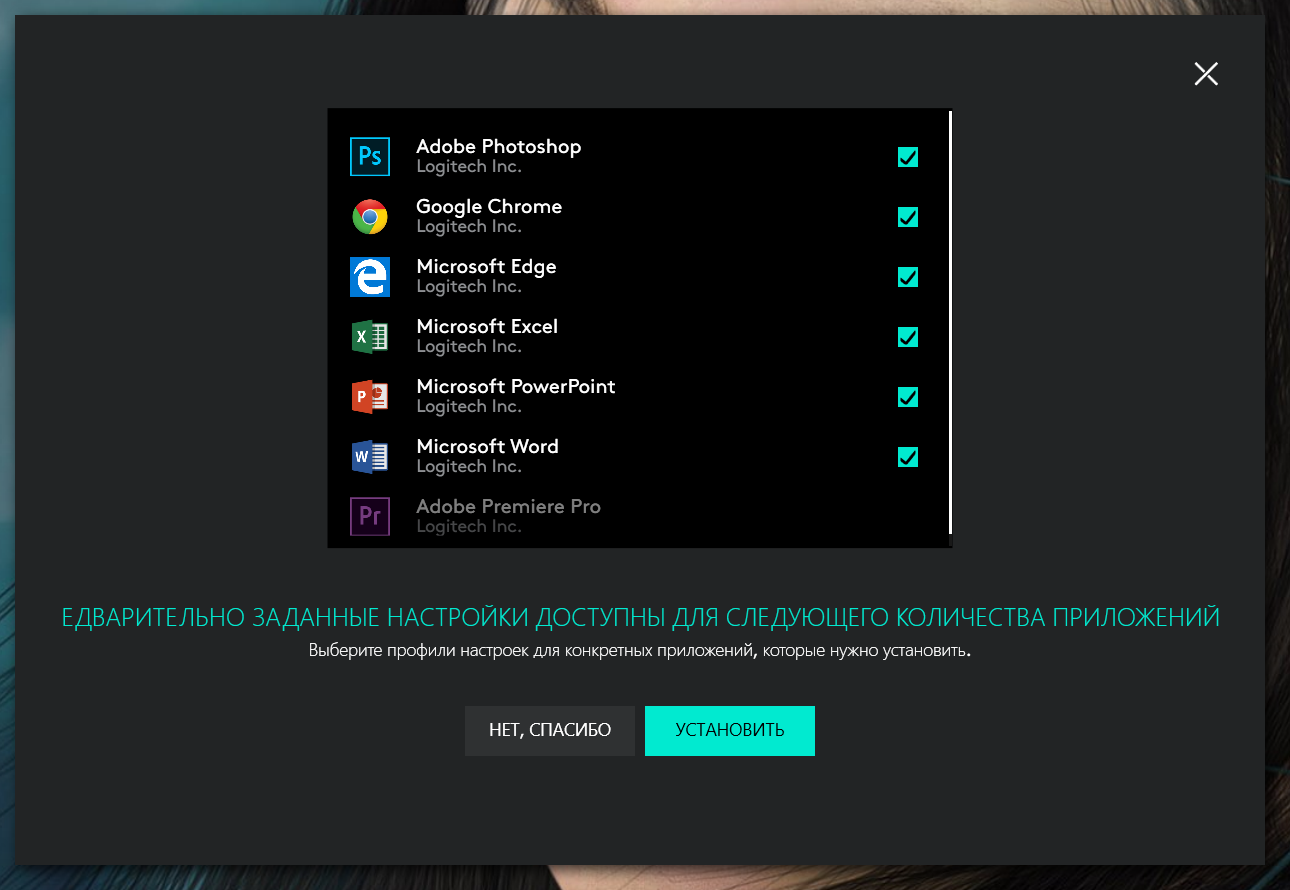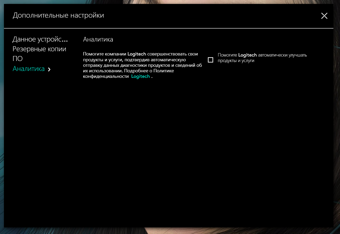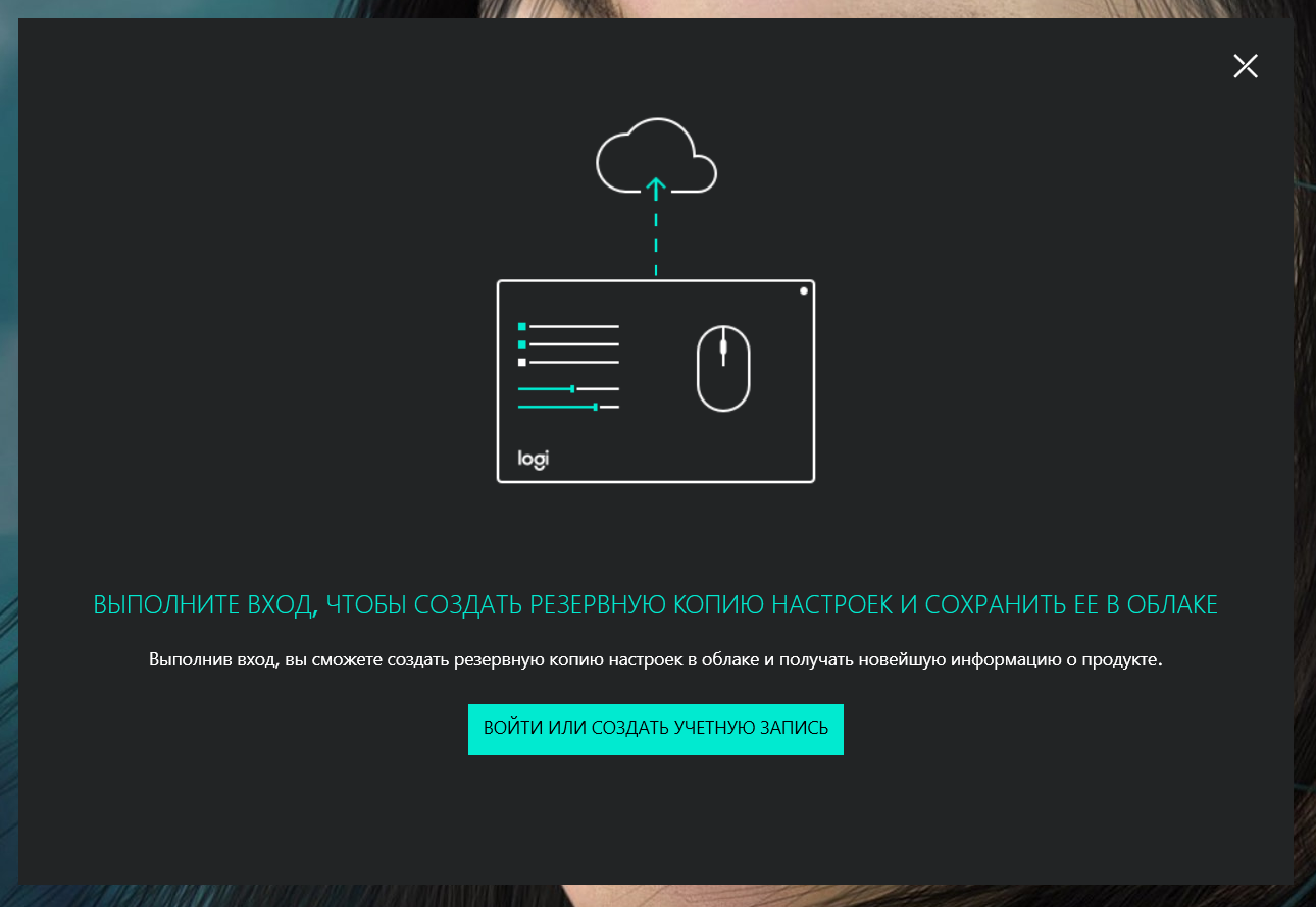 После установки сразу предлагается войти или создать новую учетную запись Logitech для сохранения настроек в облаке, но это можно пропустить, нажав на крестик.